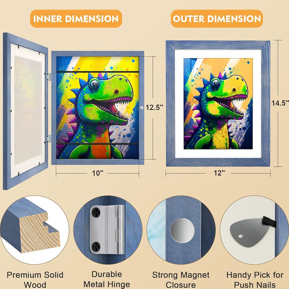 🏆 إطارات فنية للأطفال ذات جودة ممتازة لفن الأطفال: إطارات الأعمال الفنية للأطفال على طراز المعرض قابلة للتغيير مصنوعة من خشب الصنوبر الصلب، ومطلية بشكل رائع لمتانة استثنائية ومظهر أنيق، مقارنة بإطارات تخزين الأعمال الفنية المصنوعة من الخشب المركب الضعيف للأعمال الفنية. مع زجاج شبكي عالي الدقة، يوفر إطار الصورة للأعمال الفنية للأطفال رؤية واضحة للأعمال الفنية العزيزة لطفلك مثل الزجاج، ويحافظ على رسومات الأطفال بشكل مثالي. لا تقلق بشأن أي إصابة لأطفالك بسبب كسر الزجاج.