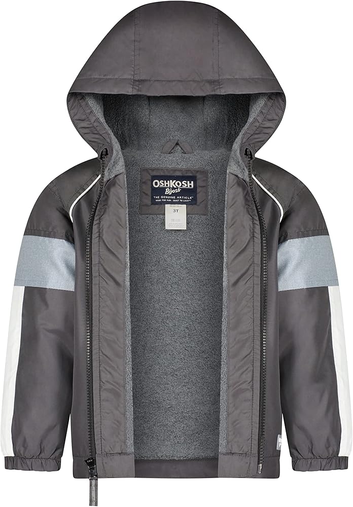 Perfect baby boy winter jacket that you and your baby boy will love! Keeps them warm and dry on a cold winter day and packed with all of the features you expect in an OshKosh B'Gosh winter coat including an attached hood, fleece lining, full zip front, two pockets, and stylish colors