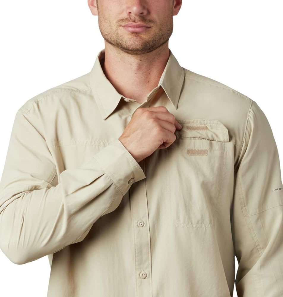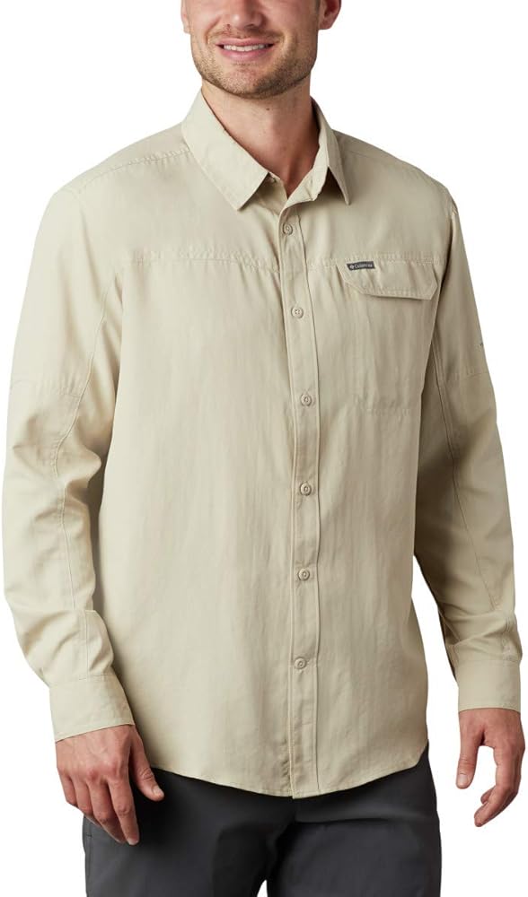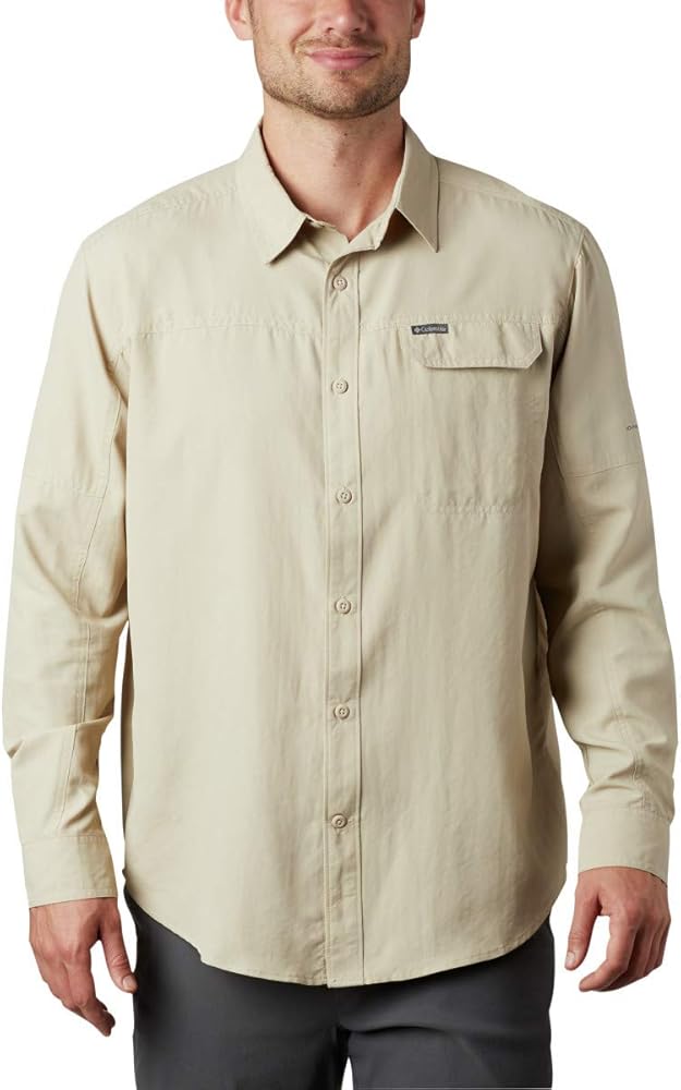 قميص سميث كريك منسوج باكمام طويلة للرجال من كولومبيا، لون فوسيل، مقاس L