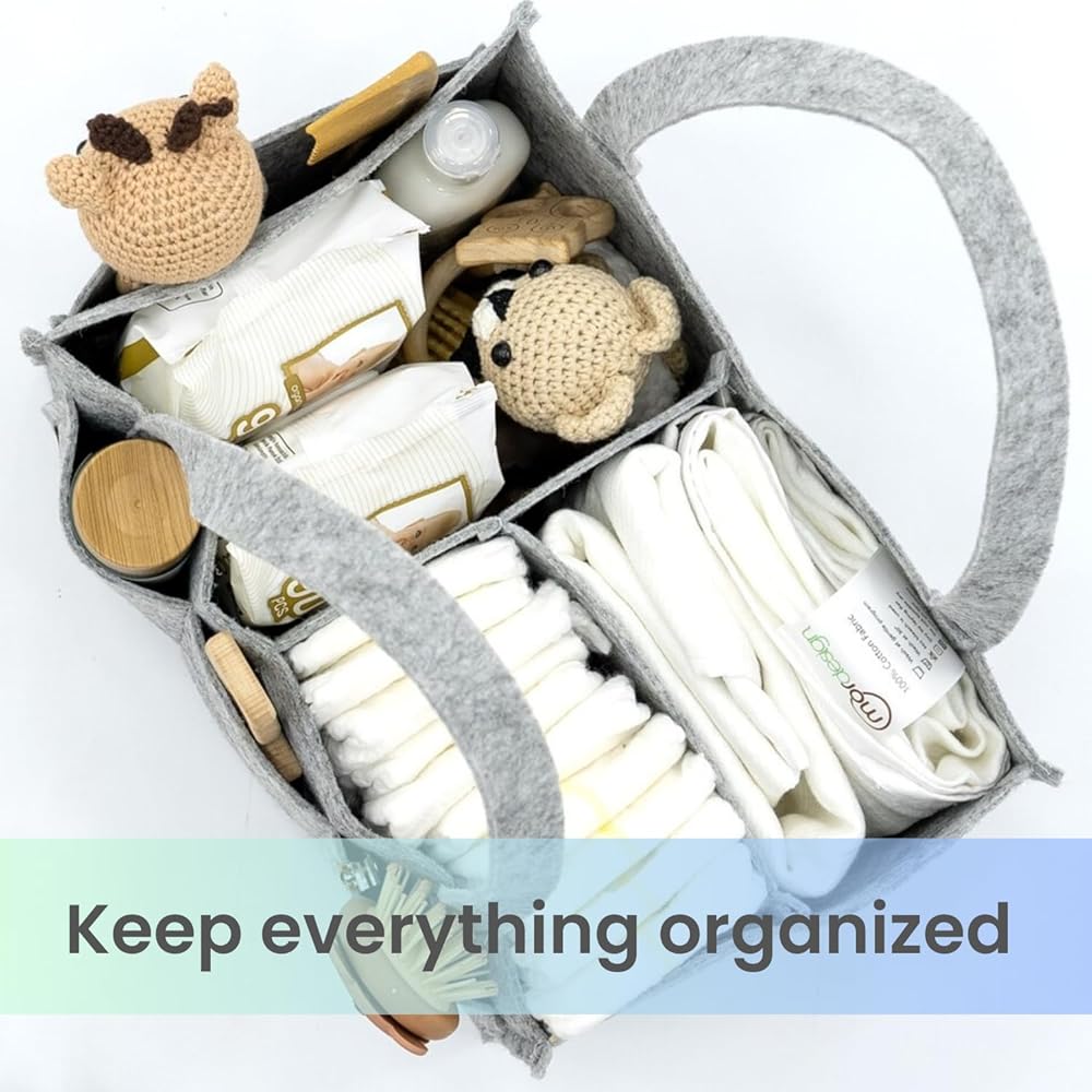 هدية لاستحمام الطفل: يمكنك تقديم هدية رائعة من خلال جمع كل القطع الصغيرة التي اشتريتها في حقيبة واحدة. ليس عليك التفكير في كيفية تقديم هداياك. تم تصميم منظم الحفاضات بألوان رمادية أنيقة. يمكنك إنهاء المهمة بتصميم وصورة مثالية.