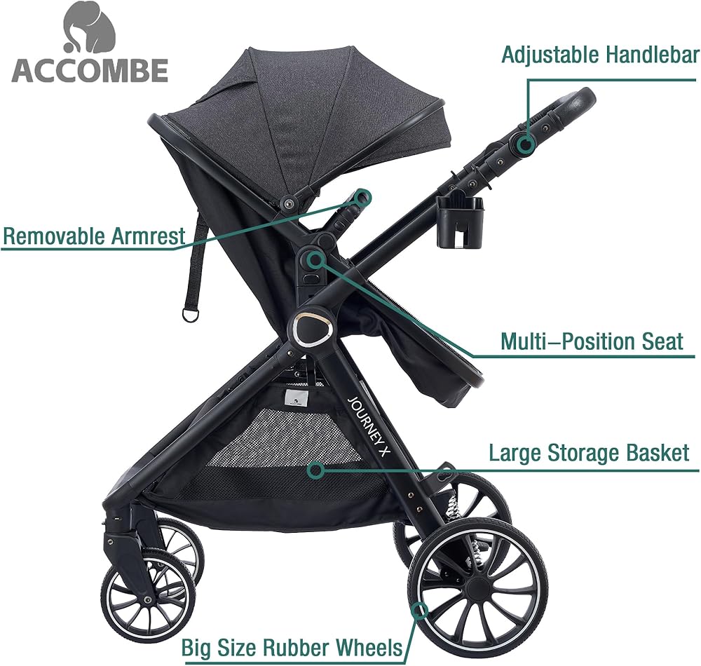 ❤ عربة أطفال فاخرة أنيقة ومتينة: تتميز عربة الأطفال Accombe بإطار معدني قوي للمشي القوي والمريح ونسيج مسامي وصديق للبشرة لن يهيج بشرة طفلك الحساسة. كما أنها تأتي مع غطاء قدم قابل للفصل للحفاظ على دفء طفلك الصغير وحقيبة أم مريحة لحمل الضروريات.