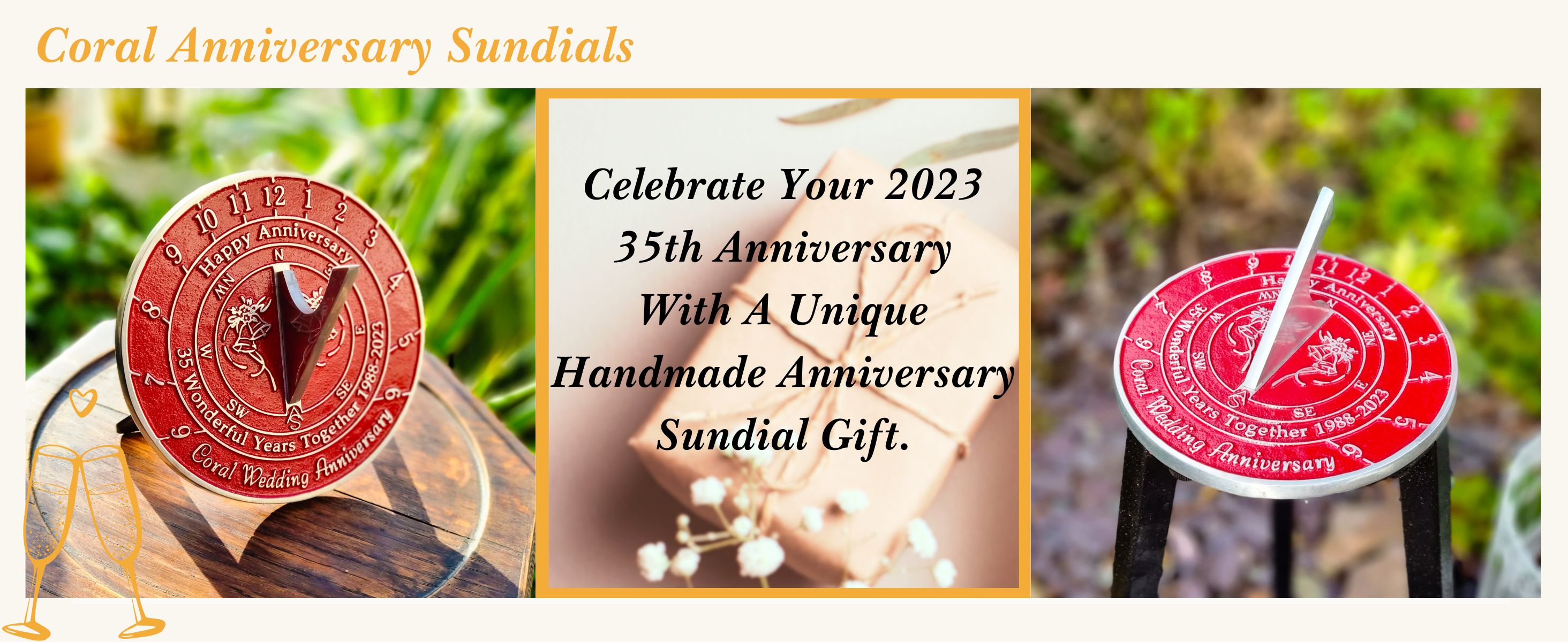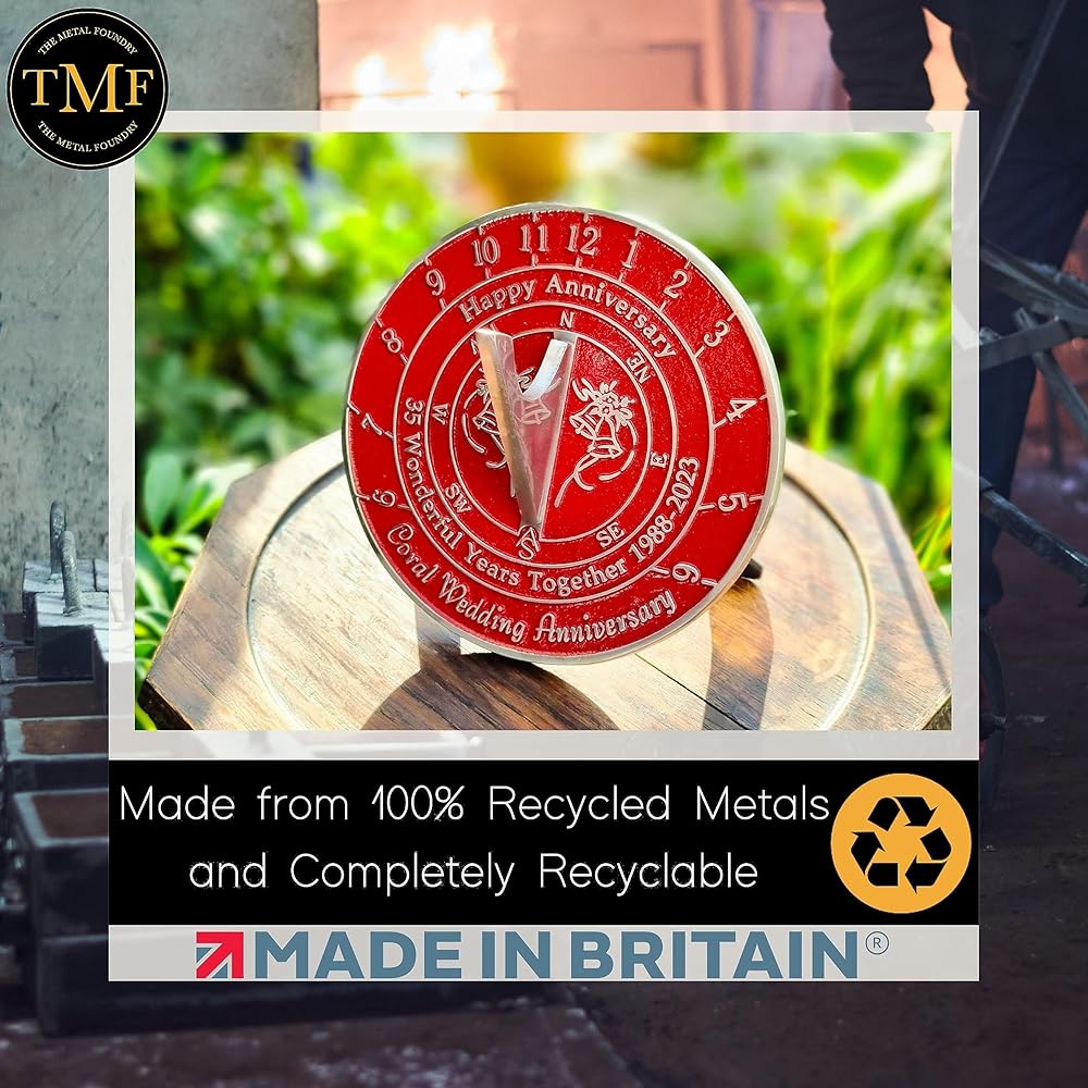 هدية الذكرى السنوية للمزولة الشمسية بمناسبة الذكرى الخامسة والثلاثين لزفاف المرجان 1988-2023. حديقة ديكور المنزل المعدنية المعاد تدويرها فكرة هدية لمدة 35 عامًا مصنوعة يدويًا في المملكة المتحدة للآباء والأجداد والأصدقاء والأزواج