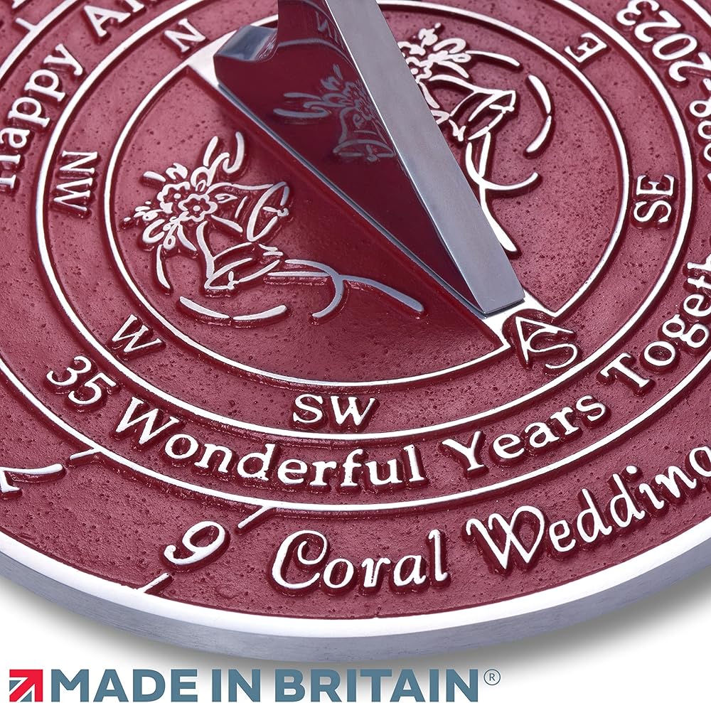 صُنع يدويًا في المملكة المتحدة - مع الألومنيوم السميك عالي الجودة، يجمع الحرفيون لدينا بين البساطة والأناقة والمتانة في كل ساعة شمسية. وبالنسبة لنسخة الذكرى السنوية الخامسة والثلاثين للزفاف، فقد أنهوها باللون الأحمر. قد يقول البعض أنه خيار جريء، ونحن نقول اختيار مستحق. بعد كل شيء، 35 عاما هو شيء يستحق الصراخ.