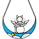الزجاج الملون جسر قوس قزح الأبيض القط الحيوانات الأليفة الهدايا التذكارية لفقدان القطط التعاطف ديكور هدايا الشمس للنساء، فكرة ذكرى الحيوانات الأليفة (القمر الأزرق W-Cat)