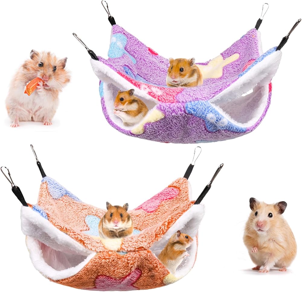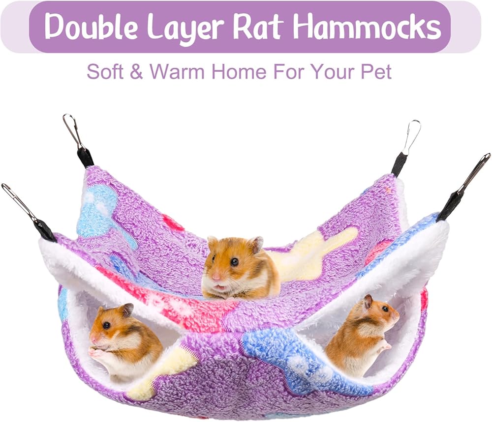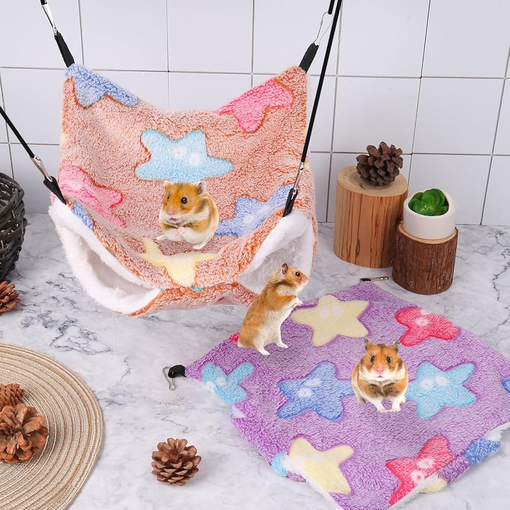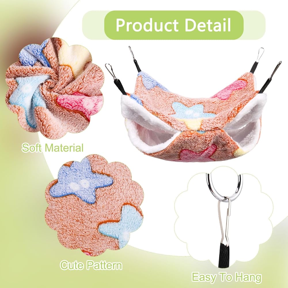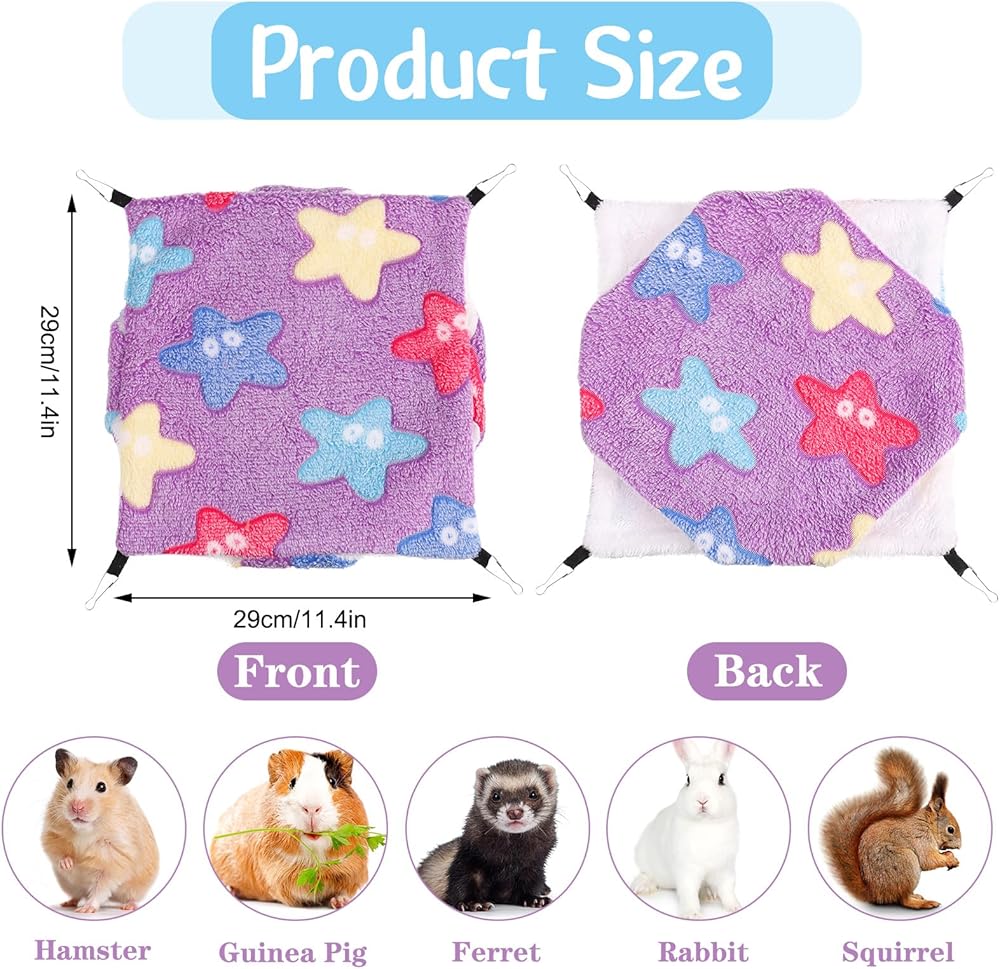 • Soft Material: the pet hammock is made of coral fleece and arctic fleece, feeling soft and warm for small pets to sleep or play inside. You can wash them by hand or washing machine, easy to clean (please remove 4 hooks before laundering).