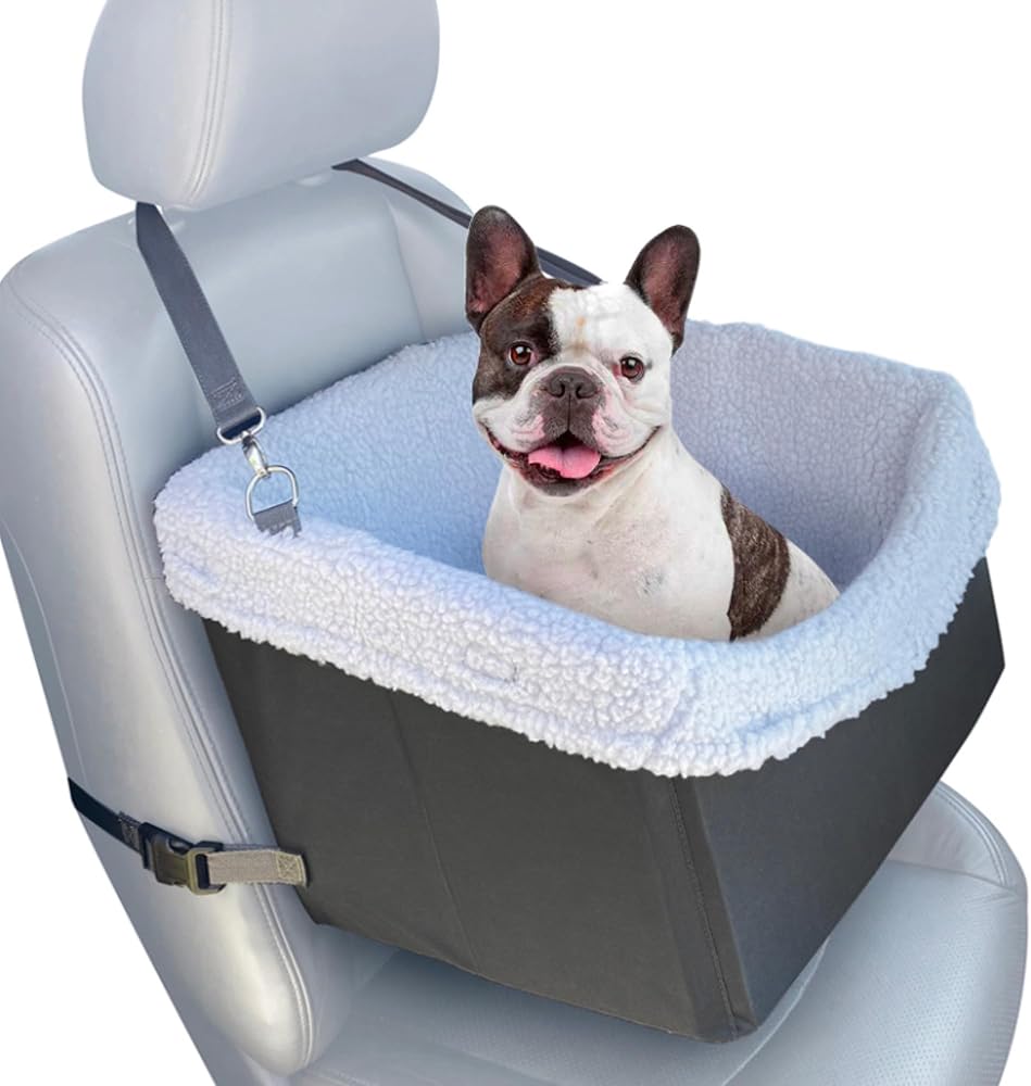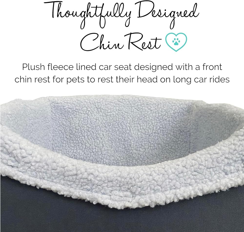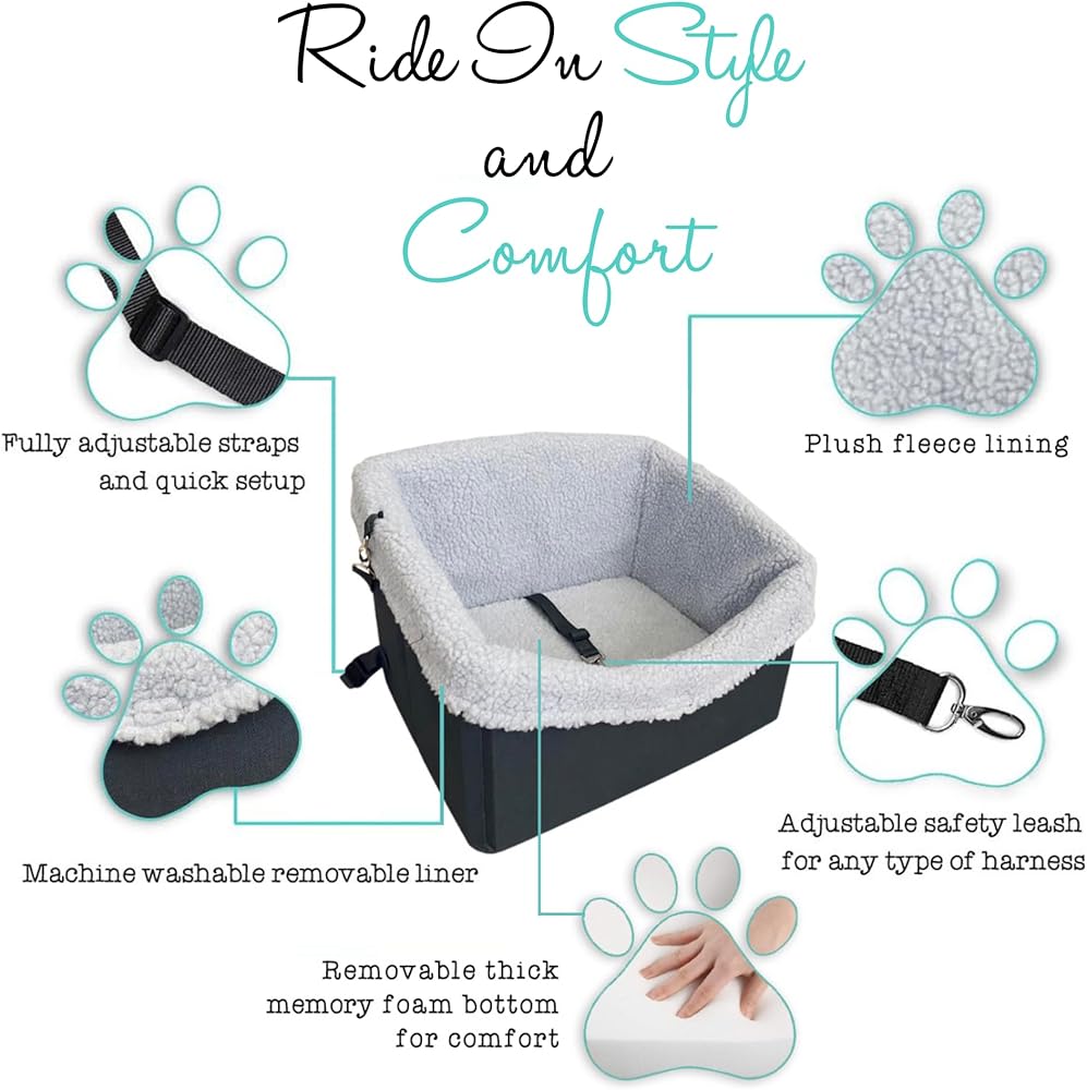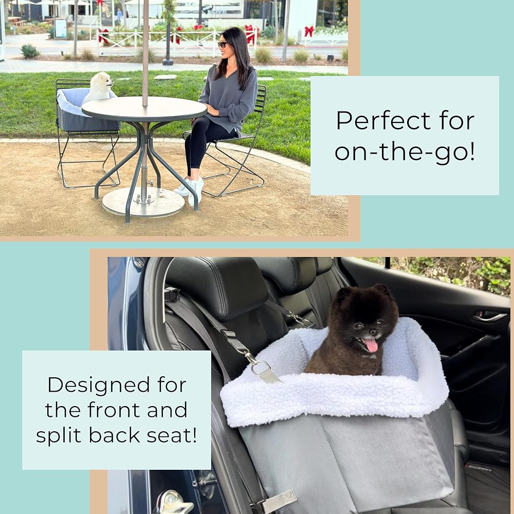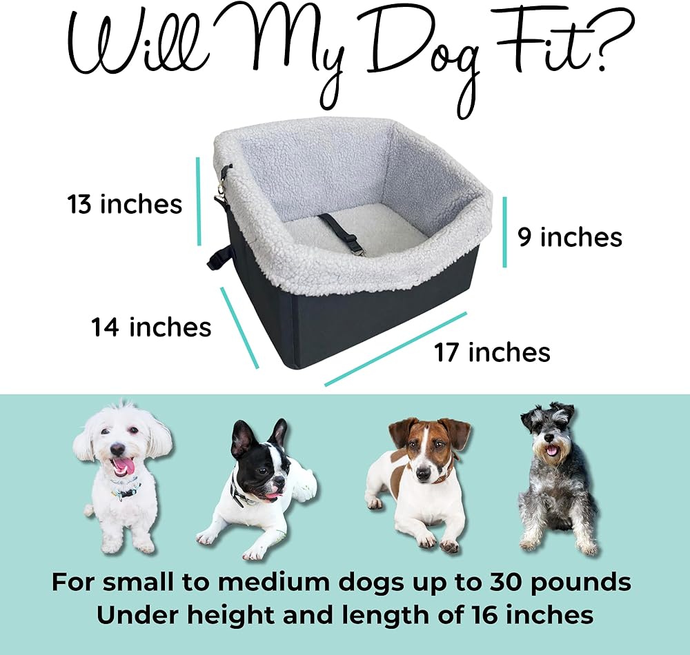 مقعد سيارة متوسط ​​للكلاب الصغيرة إلى المتوسطة - مقعد معزز للكلاب باللون الرمادي - سرير حامل للسفر للحيوانات الأليفة قابل للغسل والتعديل - يشتمل على حزام أمان للكلاب والجراء والحيوانات الأليفة يصل وزنها إلى 30 رطلاً