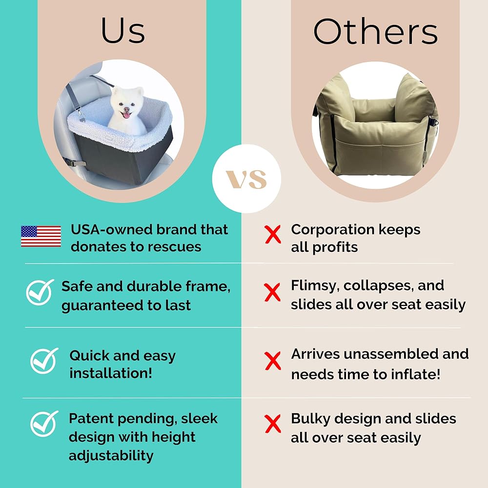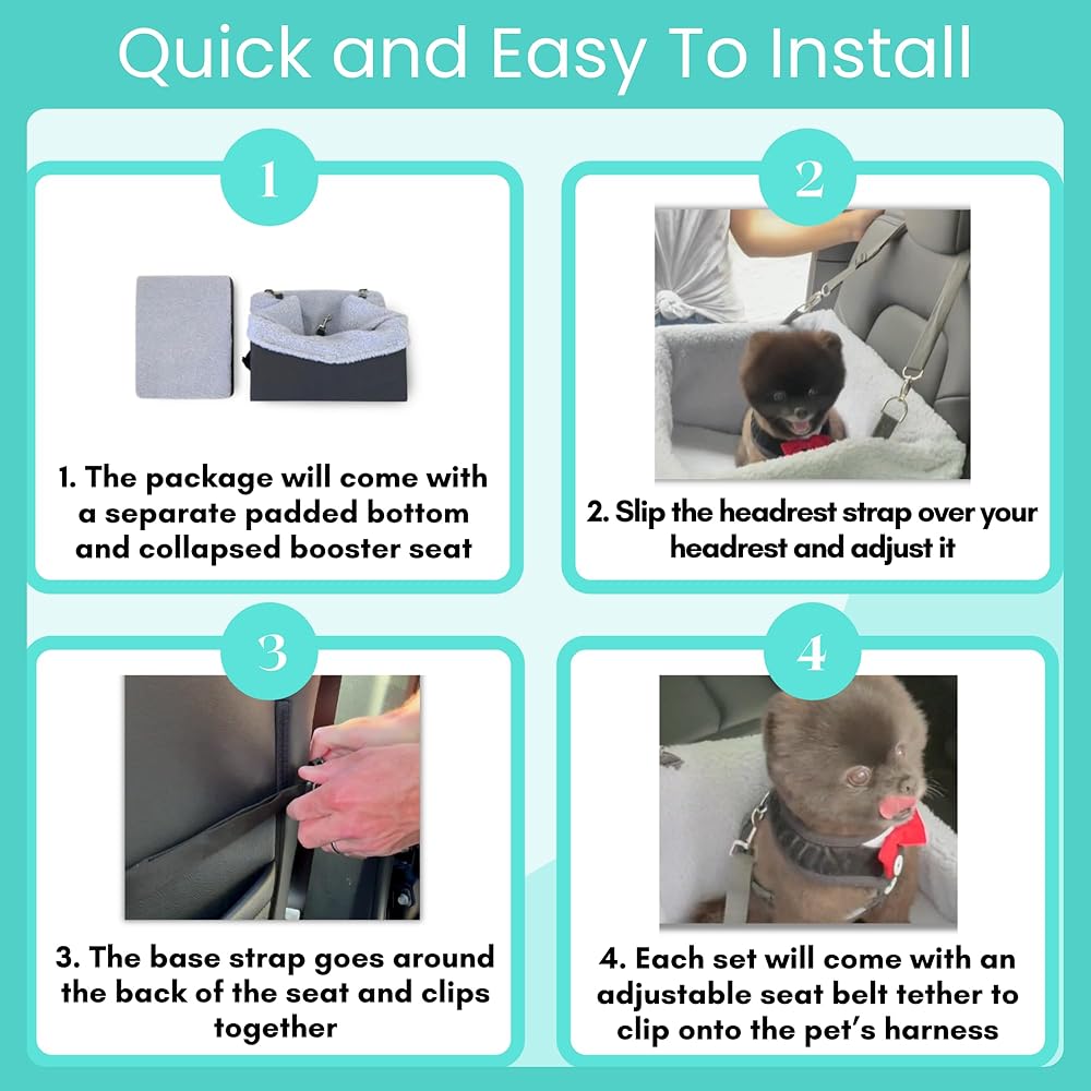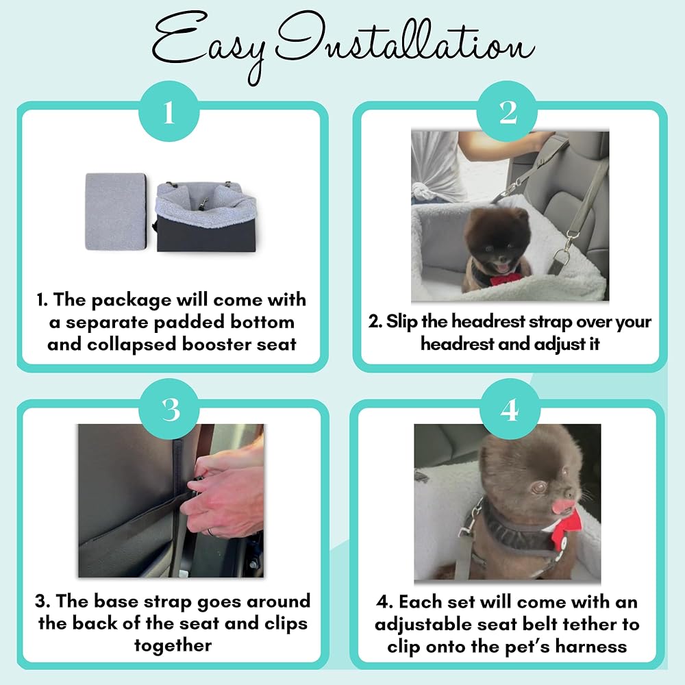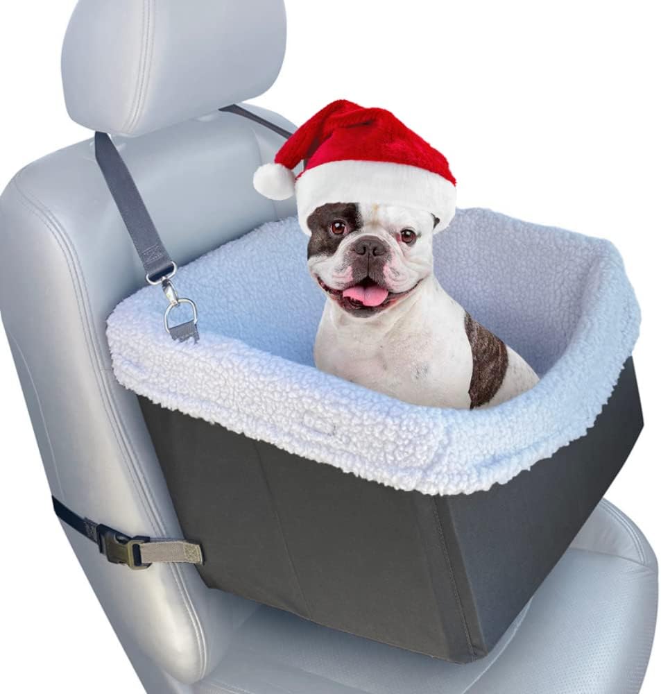مقعد سيارة متوسط ​​للكلاب الصغيرة إلى المتوسطة - مقعد معزز للكلاب باللون الرمادي - سرير حامل للسفر للحيوانات الأليفة قابل للغسل والتعديل - يشتمل على حزام أمان للكلاب والجراء والحيوانات الأليفة يصل وزنها إلى 30 رطلاً