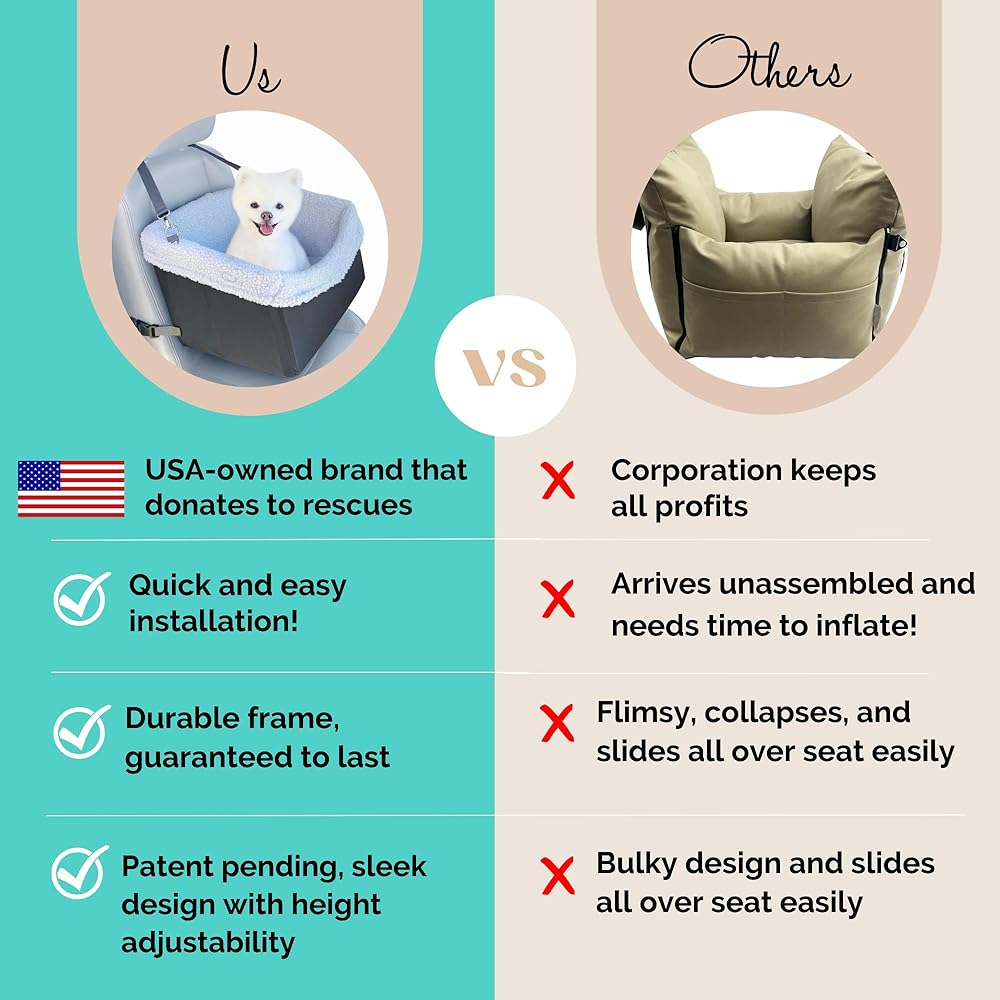 • 🐾 قوي ومصمم ليدوم طويلاً - تم تصميمه واختباره بعناية لتحقيق الكمال. لن تنهار مقاعدنا وهي متينة للغاية بمجرد تركيبها باستخدام كلا الحزامين على مسند الرأس وقاعدة المقعد.