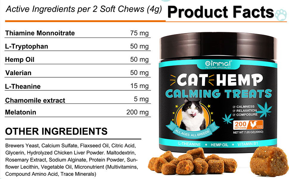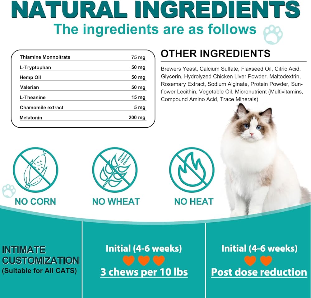 مضغ مهدئ للقطط من Yecuce، لحظات هادئة للقطط، تخفيف التوتر، النباح، مشاكل السفر، الانفصال، الرعد، 200 قطعة