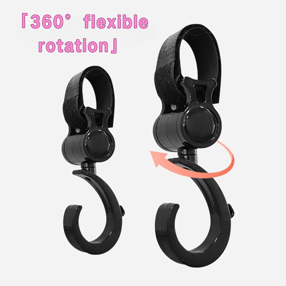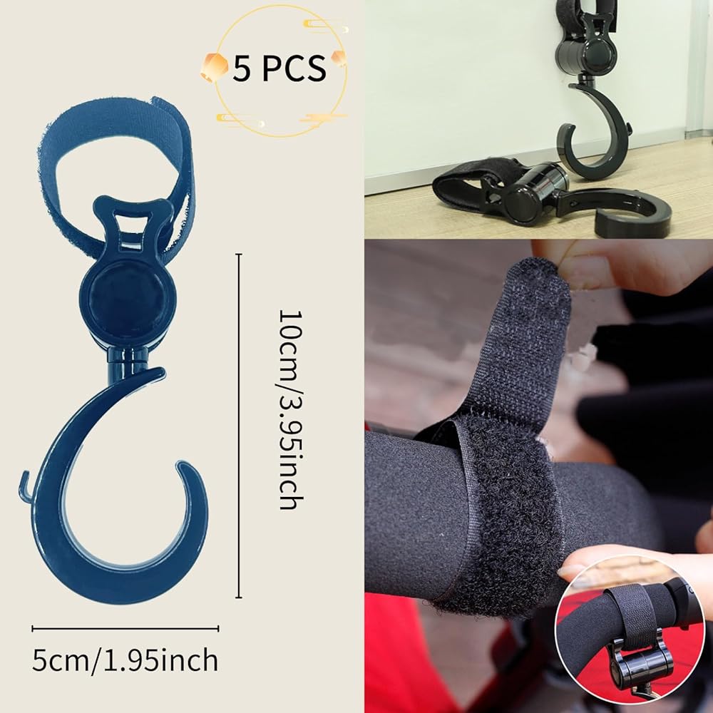 Enhanced Daily Convenience: Embrace everyday ease with our pack of five Walker Hooks for Diaper Bags. Designed in sleek black, these hooks offer impressive load-bearing capacity, rotating 360 degrees for versatile usage scenarios.