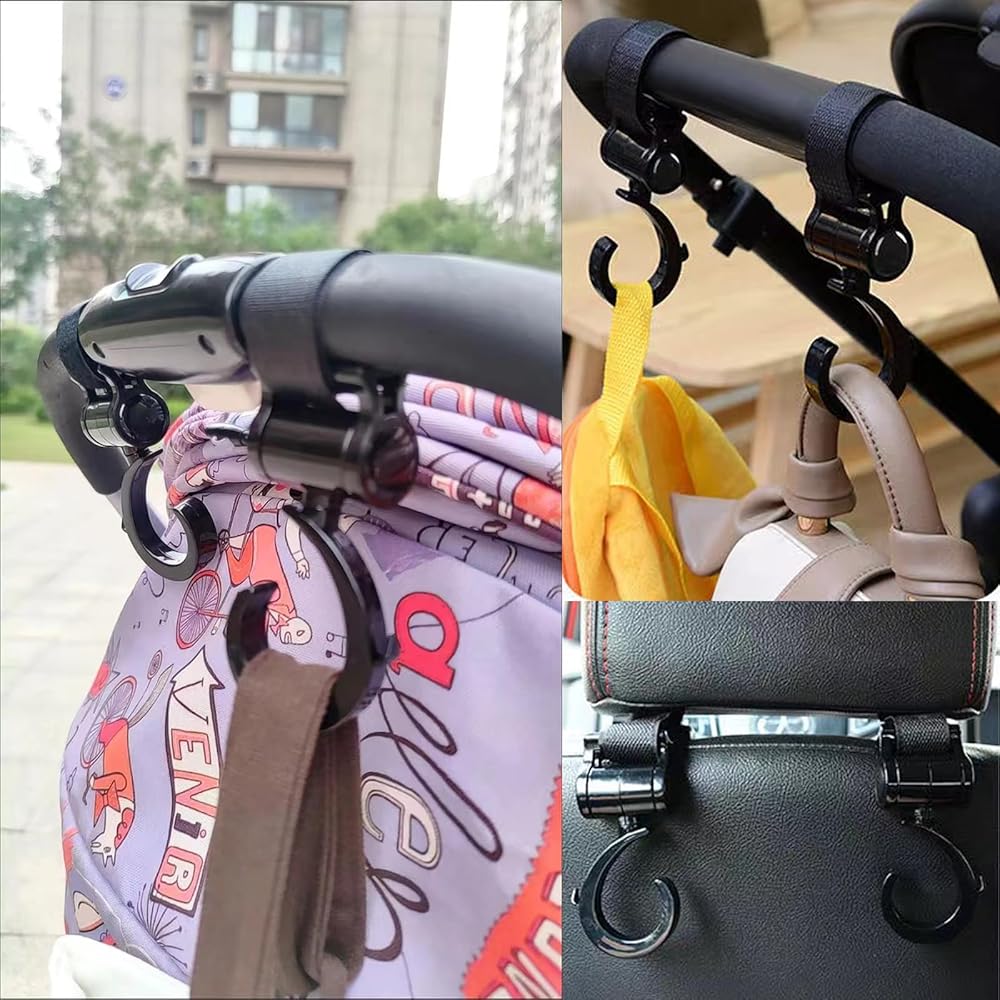 Versatile Utility: From strollers and wheelchairs to car seats and prams, these hooks adapt to a variety of equipment. Simplify your journey with hands-free convenience. Hang groceries, purses, clothing, and more, transforming your excursions.