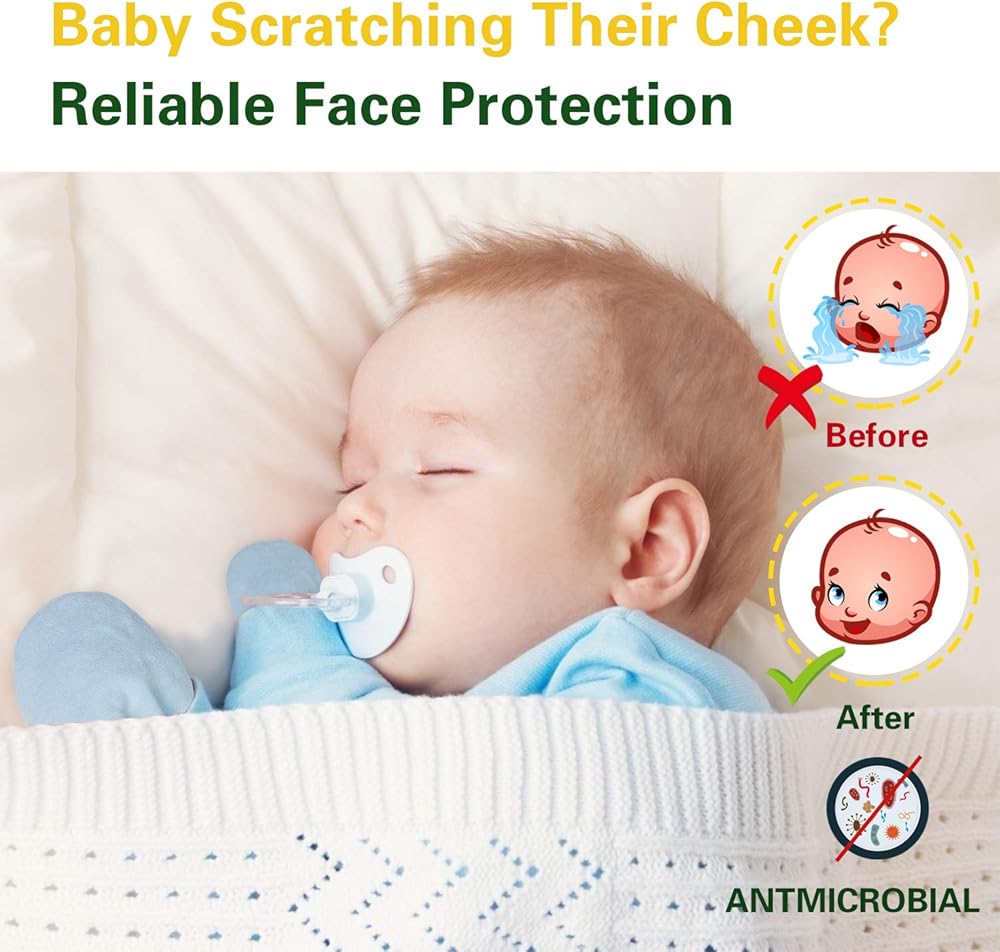 • قفازات الأطفال لا تخدش: تساعد طفلك بشكل فعال على منع خدش نفسه. لا يوجد خدش عند ارتداء قفاز الطفل هذا. الطول 3.54 بوصة/9 سم، والعرض 2.76 بوصة/7 سم، مما يناسب الطفل بشكل مثالي من 0 إلى 6/6 إلى 12 شهرًا.