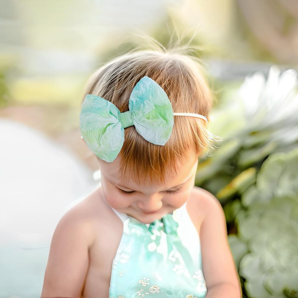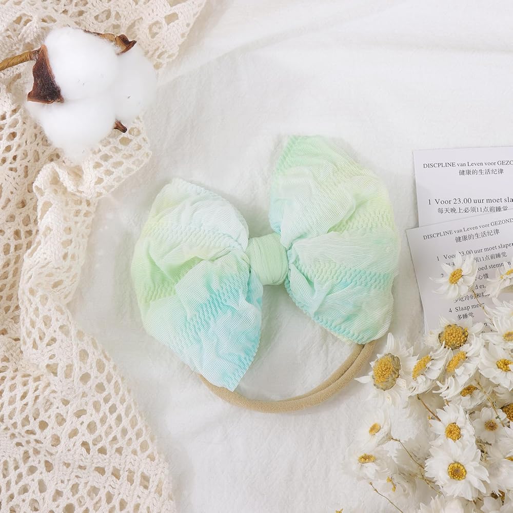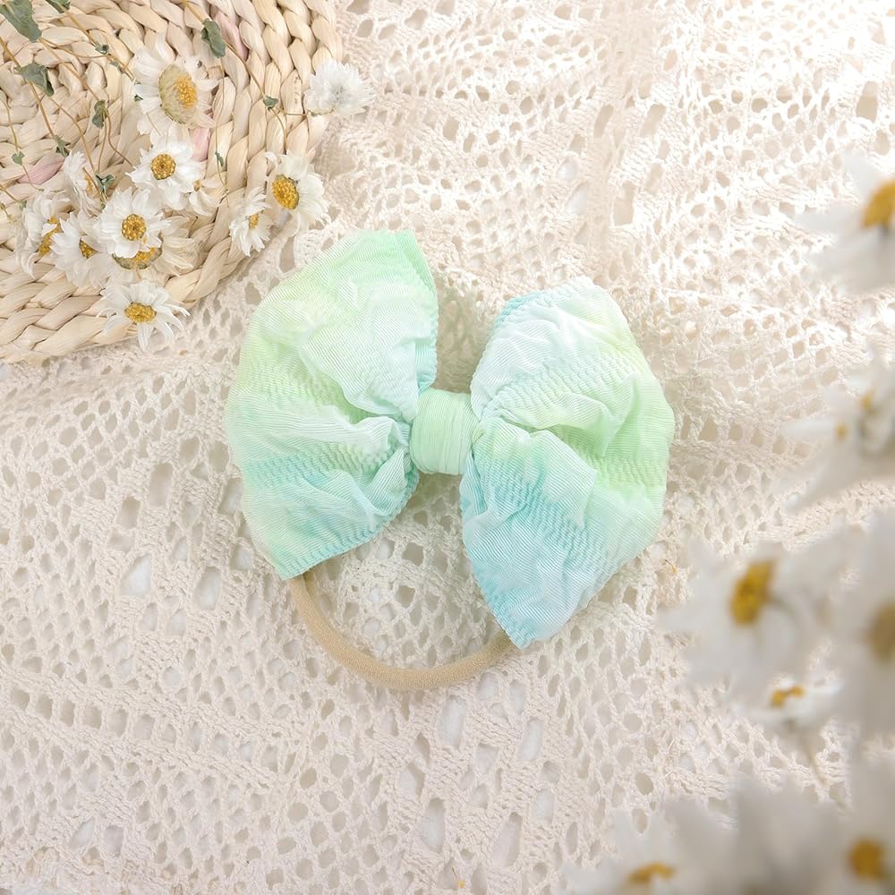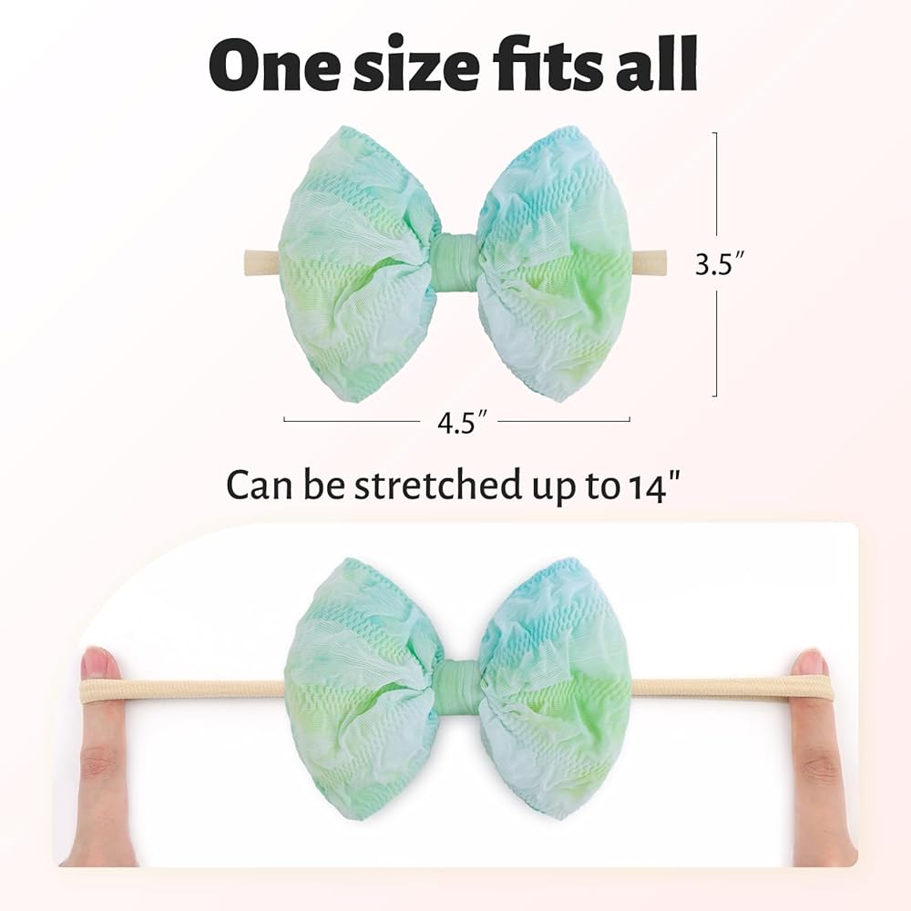 • قوس عصابة رأس مطاطي: تصميم أنيق جديد وصبغ مع مادة قماش فقاعية مزخرفة بفيونكات شعر على شكل فيونكة مقاس 4.5 بوصة للفتيات الكبيرات مع عقدة، تظهر ناعمة وأنيقة.