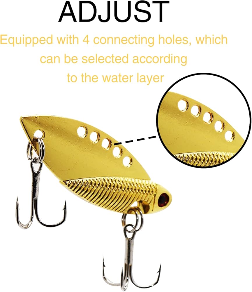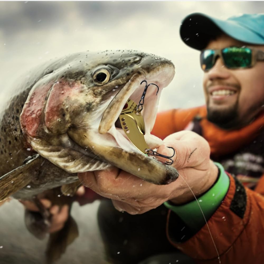 Its blades shaped like a propeller when the lure is in motion, creating varying degrees of flash and vibration that mimics small fish or other prey. Vivid swimming actions are irresistible to big fish,like bass,trout,etc.