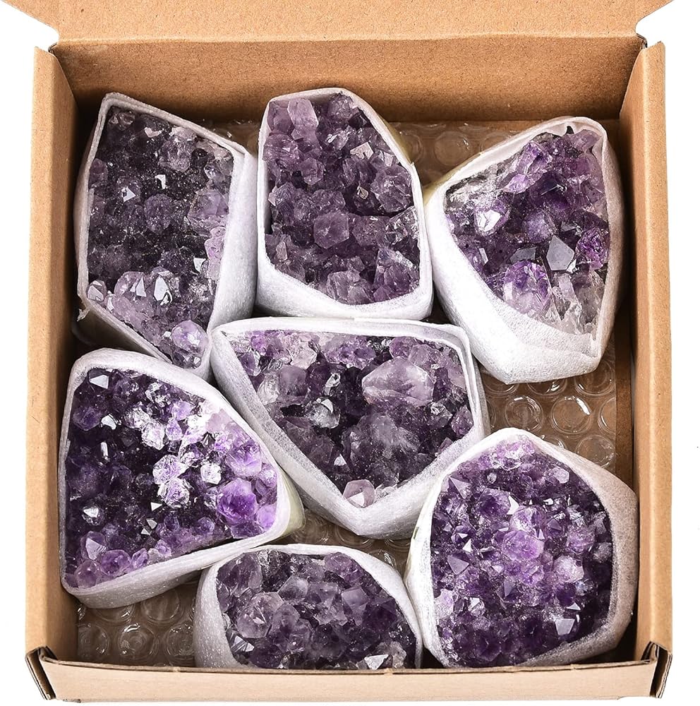 • [حجم كتلة الجمشت] يبلغ حجم الجيود الكريستالي الجمشت حوالي 0.8-1.2 بوصة، ويزن حوالي 1.1 رطل/صندوق. تعتمد كمية الحجارة التي ستحصل عليها على حجم ووزن كل حجر. تذكير لطيف: كل جيود كريستال جمشت طبيعي وغير منتظم حيث يختلف اللون والشكل قليلاً عن الصور، يرجى مراعاة المنتج الفعلي الذي استلمته.