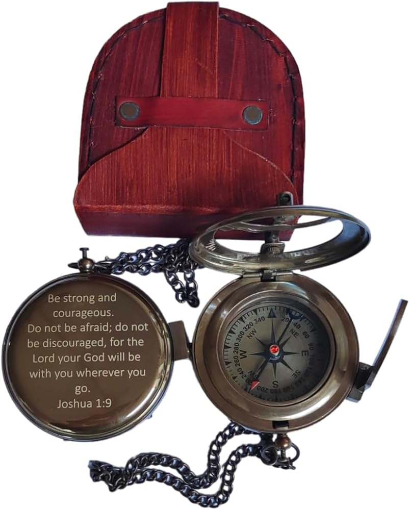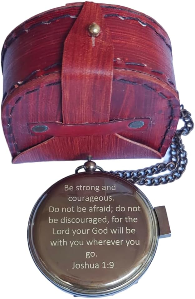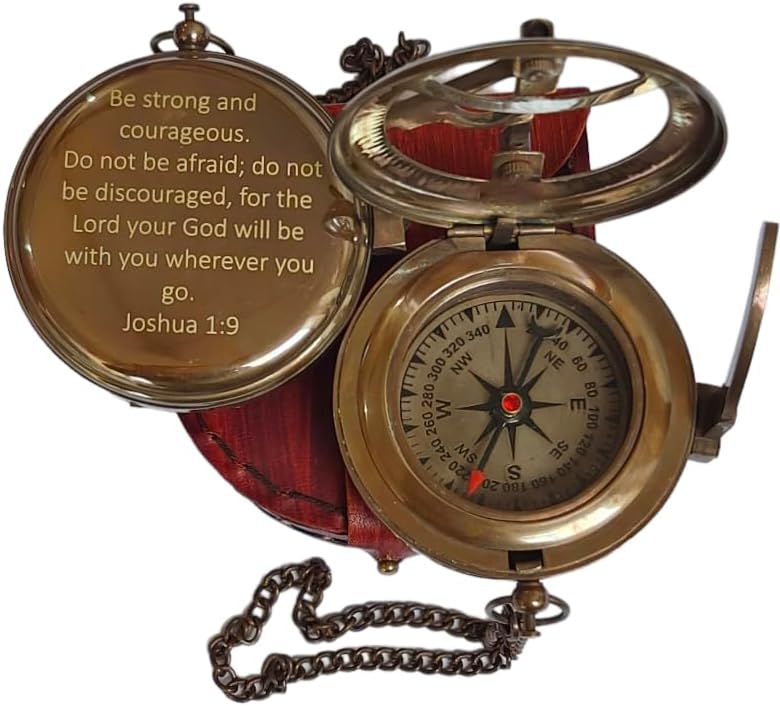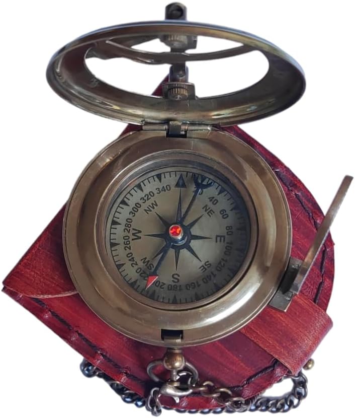1. Introducing our Sundial Compass with a beautifully crafted leather case, a perfect blend of functionality and elegance. This compass is designed to help you navigate with precision and style.