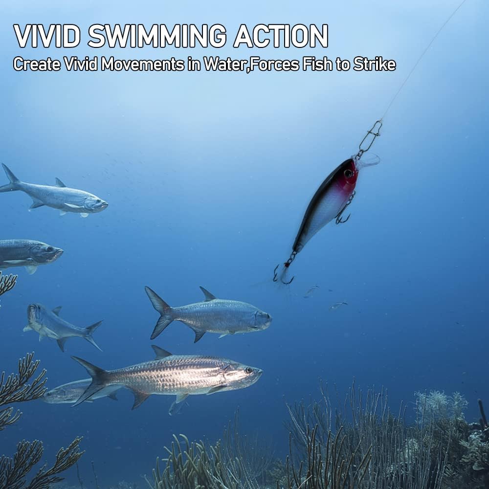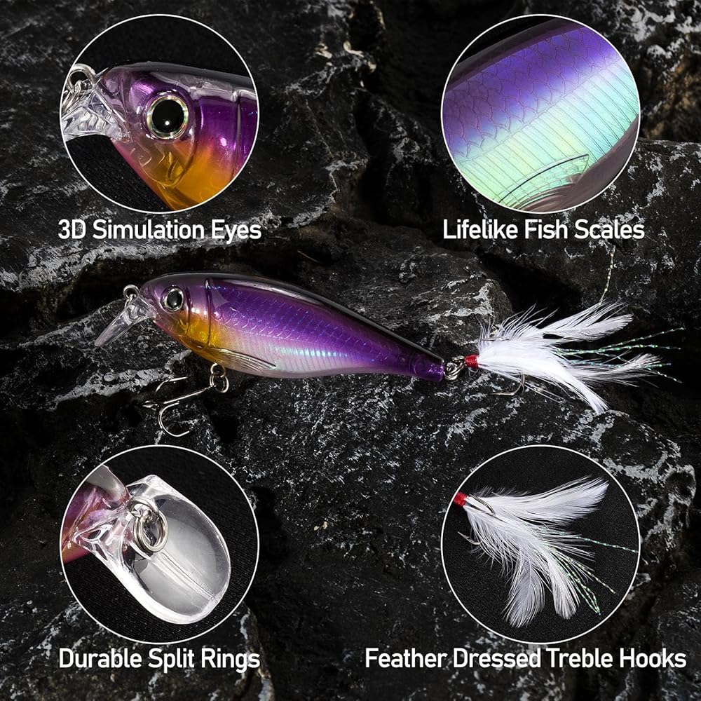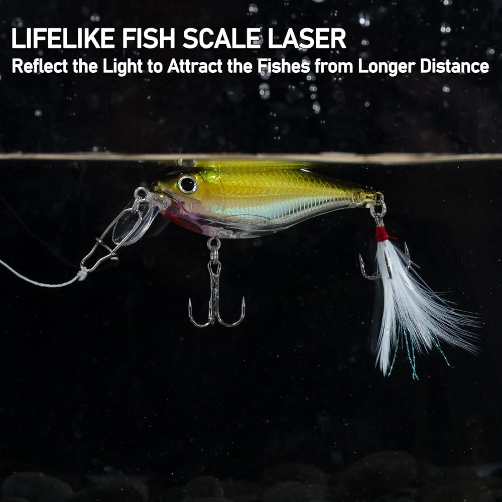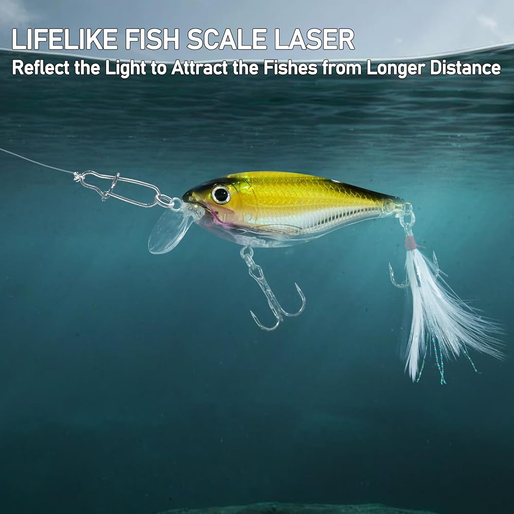 تطابق مثالي: طُعم الصيد هذا مجهز بعيون سمكة ثلاثية الأبعاد مفعمة بالحيوية، ومقاييس مزخرفة، وحلقات مقسمة مقاومة للتآكل وذيل من الريش لمظهر واقعي، مما يجعله أداة صيد قوية.
