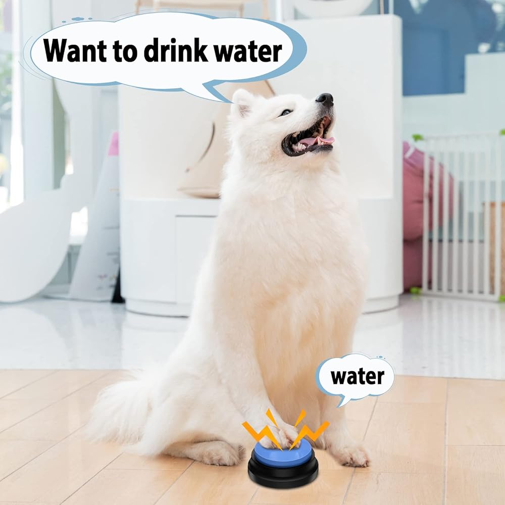 Pet Training Button: You use the dog button to record specific words or phrases, such as drinking water, playing, eating, etc. Showing the dog how to do it, your pet will learn how to use buttons to express its needs and communicate with you.