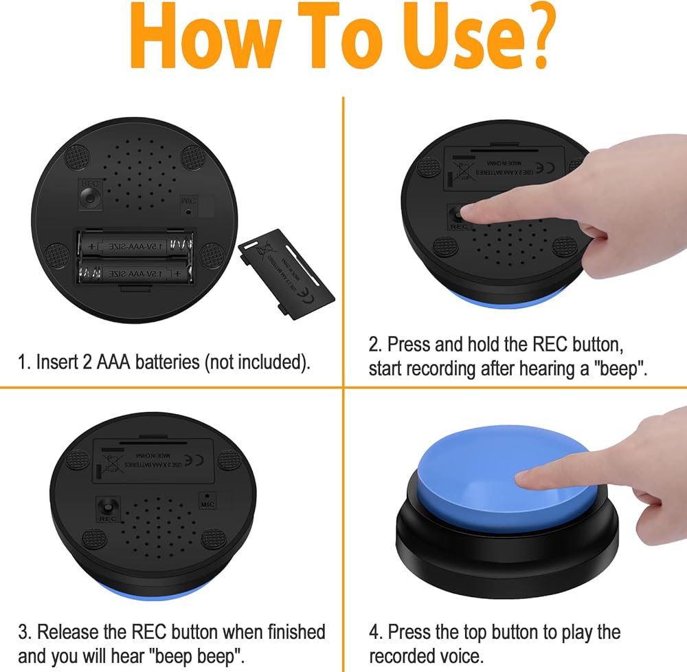 Easy To Use: These buttons are easy to use and set up, just press the REC button to record your sound, then press the top button to play the recorded sound.