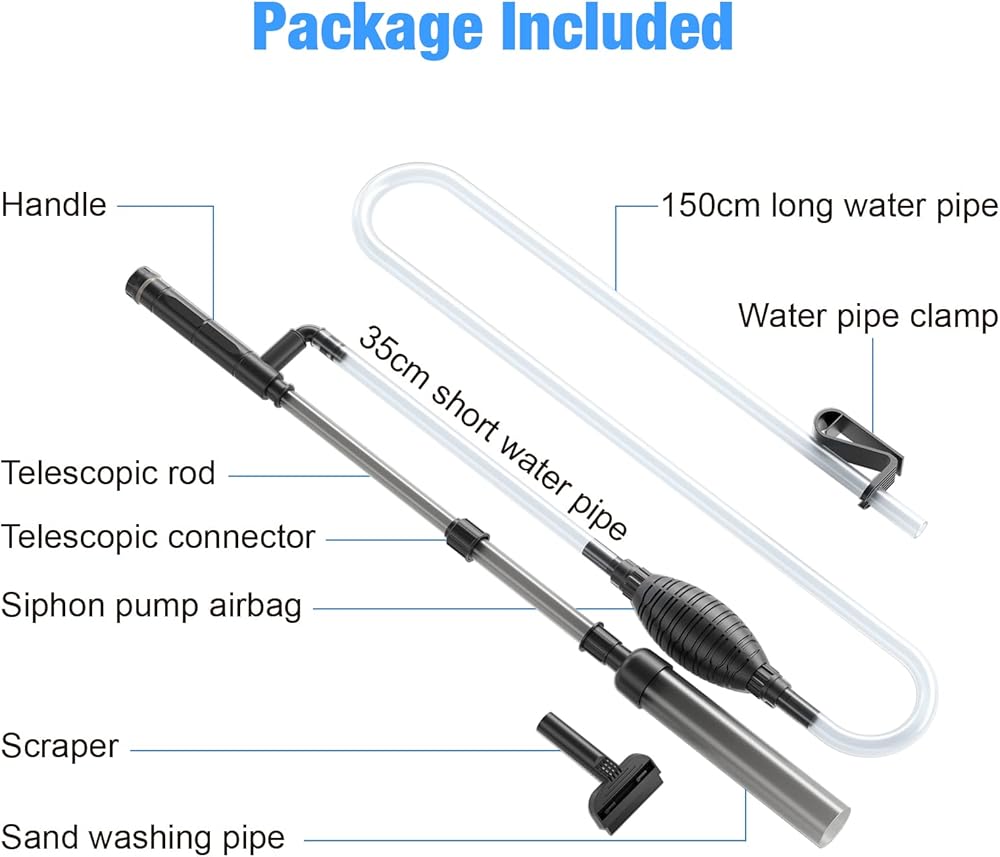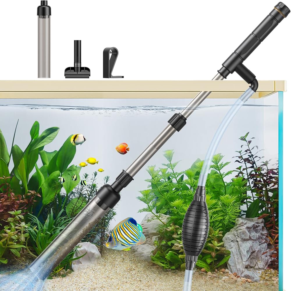 🐟 【مناسب لجميع أنواع أحواض الأسماك】منظف الحصى لحوض السمك من بيدي مجهز بقضيب تلسكوبي قابل للتعديل بطول 15 سم وخرطوم مياه ممتد بطول 1.85 متر، والذي يمكن تعديله ليناسب أنواع وأحجام مختلفة من أحواض السمك. يجعل تنظيف حوض السمك أسهل وهو شريك جيد لا غنى عنه في حياتك اليومية.