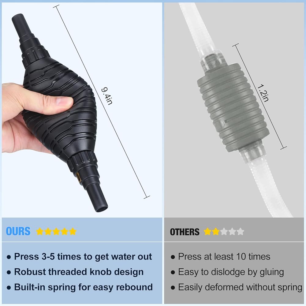 🐟【سهلة التركيب والاستخدام】مكنسة الحصى الخاصة بنا سهلة التركيب والاستخدام. ما عليك سوى الضغط على كرة السيفون عدة مرات، وسيتدفق الماء تلقائيًا بسرعة. يمكن لمشبك الخرطوم تثبيت الخرطوم في الدلو، مما يمنع الماء من تناثر أو اتساخ الأرض عن طريق الخطأ.