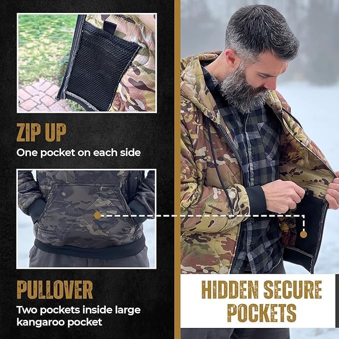 ملاءمة مثالية: تم تصميمها لتناسب الجسم بشكل مريح للحصول على مظهر مصقول مع توفير مساحة كافية لاستيعاب الطبقات في درجات الحرارة القصوى، تأتي قمصان Woobie ذات القلنسوة دائمًا للحصول على ملاءمة مثالية. اطلع على جدول المقاسات الخاص بنا لمزيد من التفاصيل (انظر الصور).