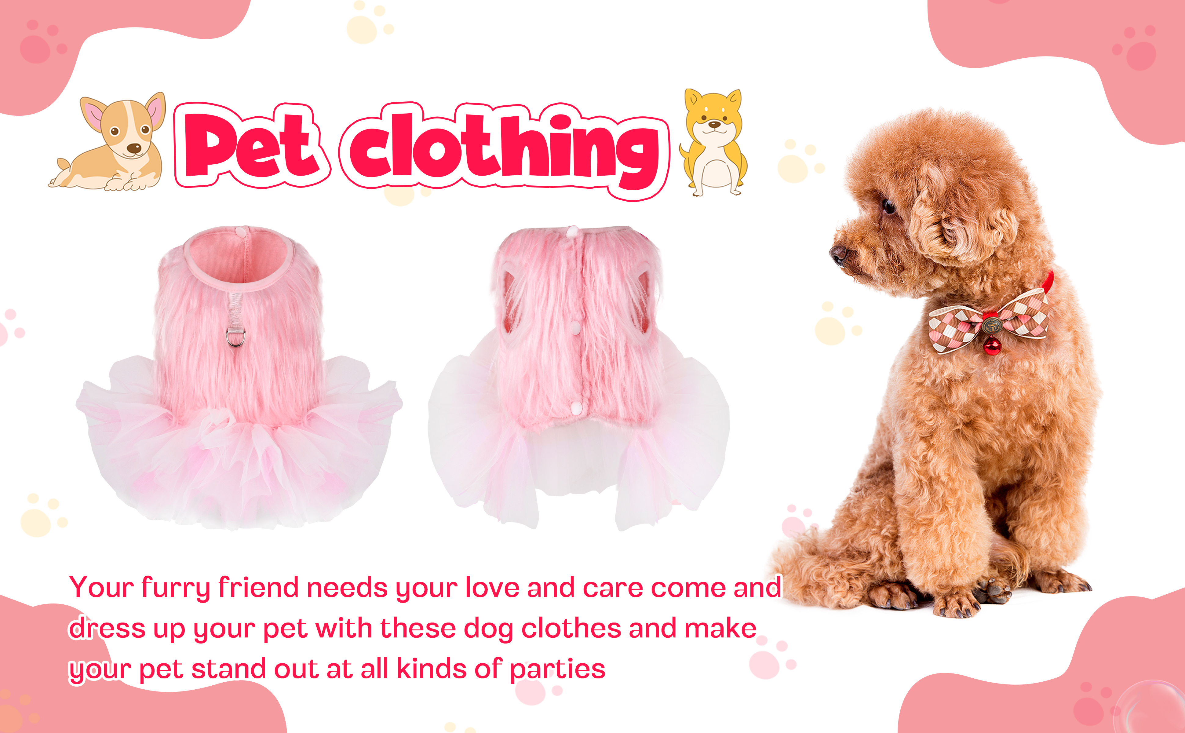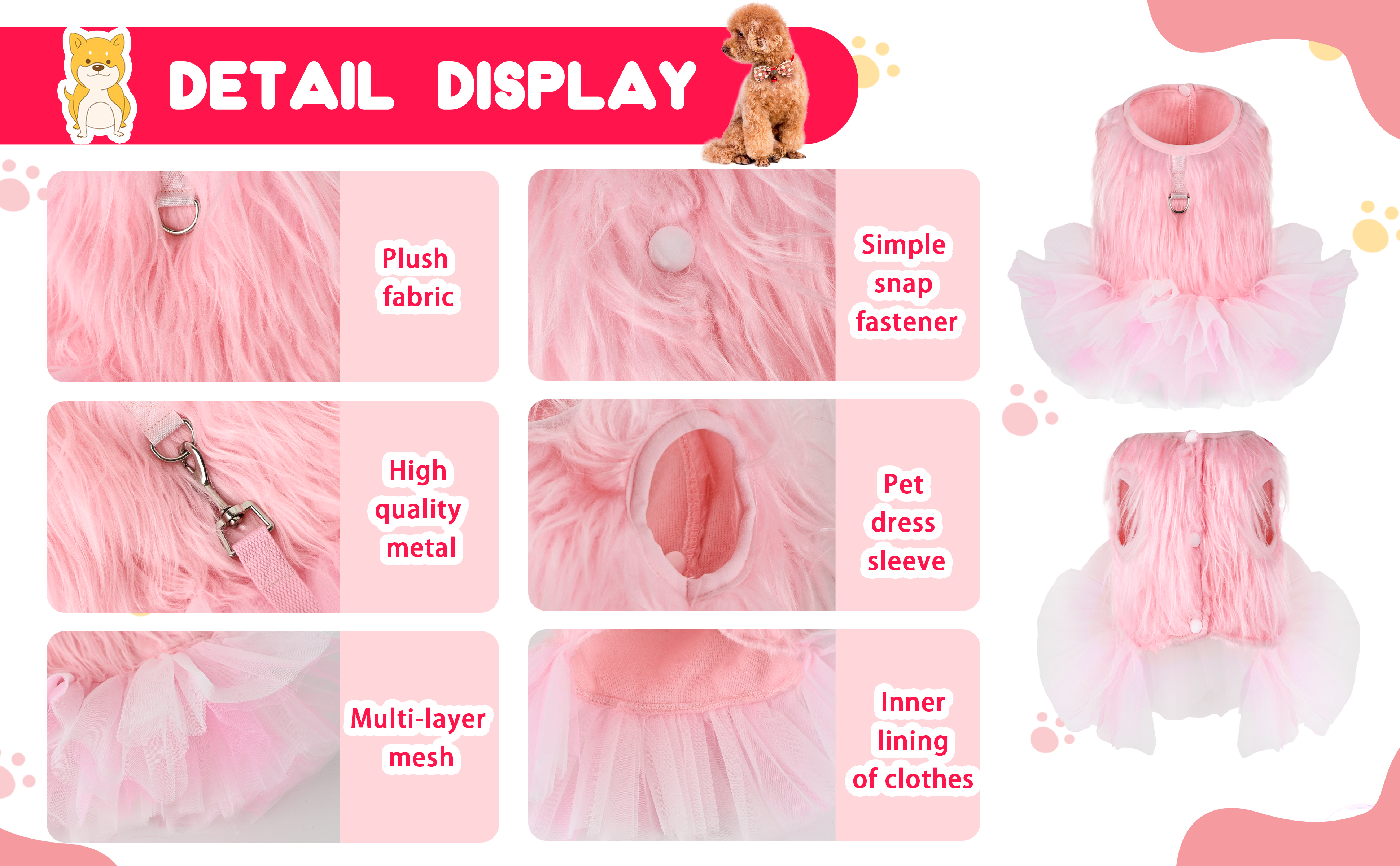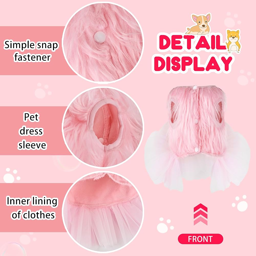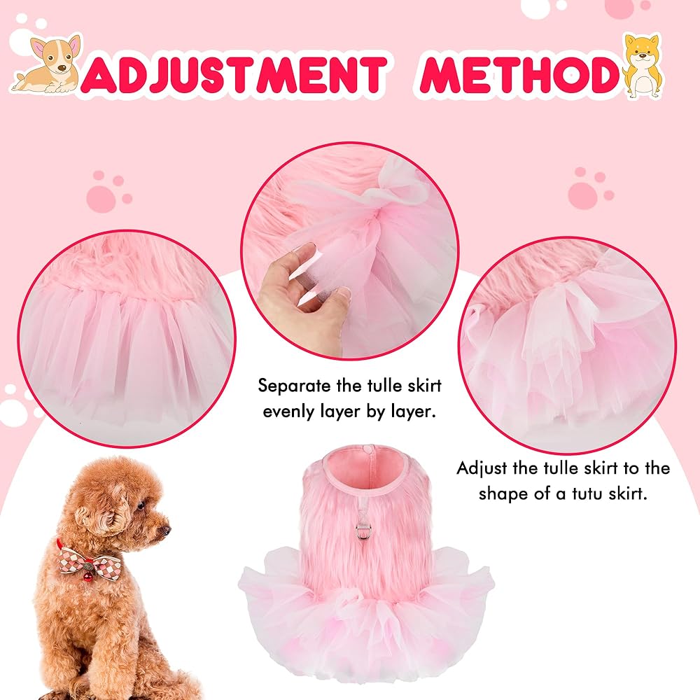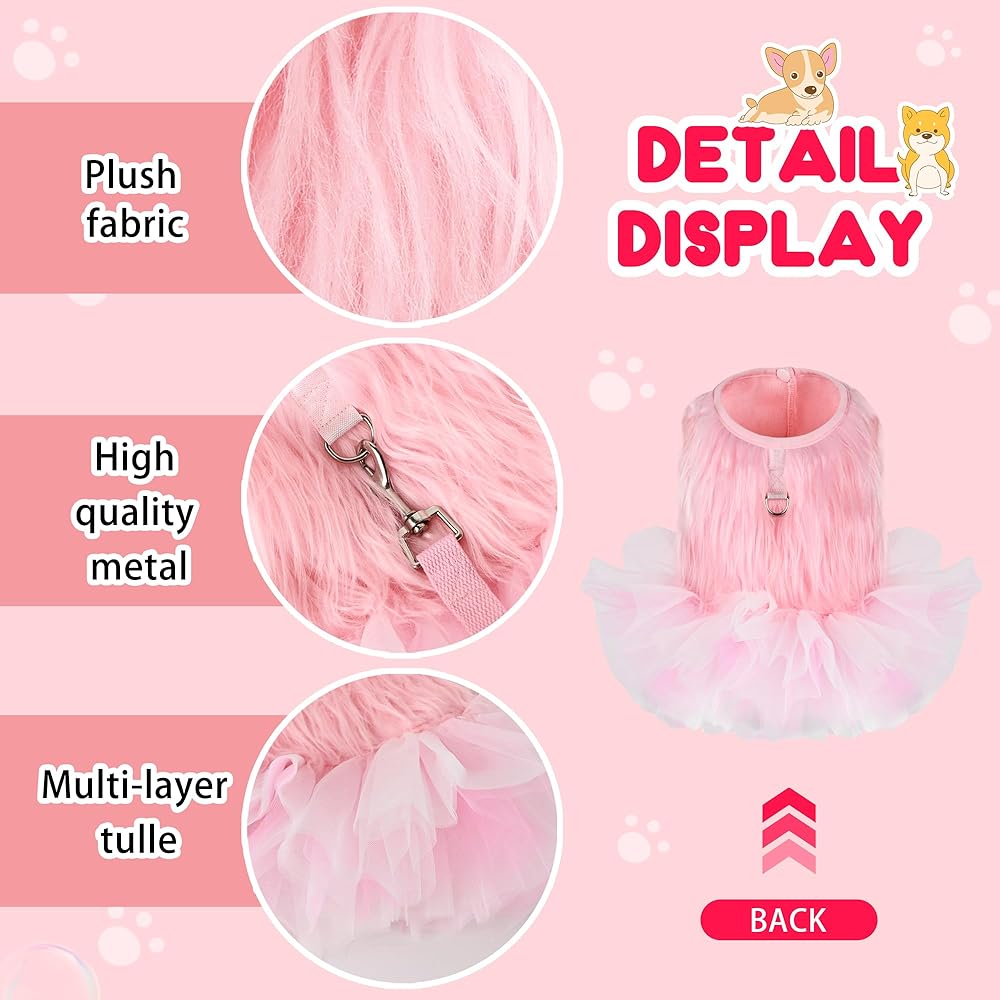 • التصميم: التصميم البسيط والأنيق يضيف القليل من المرح والجاذبية إلى الجرو الصغير، تصميم تنورة توتو يضيف الحلاوة، وستكون أميرتك الصغيرة رائعة. ارتدي الفستان اللطيف، وارتدِ المقود وتمشى أو العب مع كلبك. تصميم البلوفر سهل الارتداء والخلع.