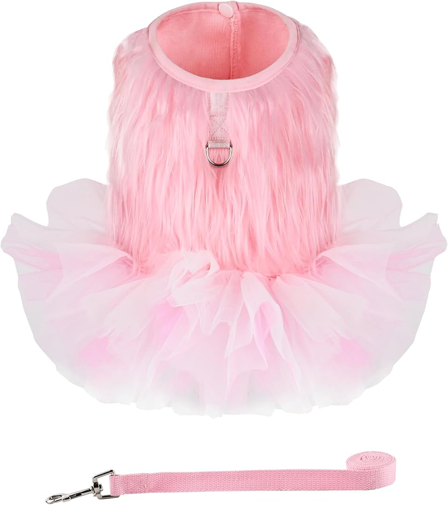 • فستان الأميرة الفاخر اللطيف هذا مصنوع من طرف رقيق ومطوق وهو تنورة توتو رائعة من نسيج ناعم وجيد التهوية. توجد حلقة معدنية متينة على شكل حرف D في الخلف لحمل الجرو ومنعه من الجري. حبل مصنوع من النايلون، ناعم ومتين.