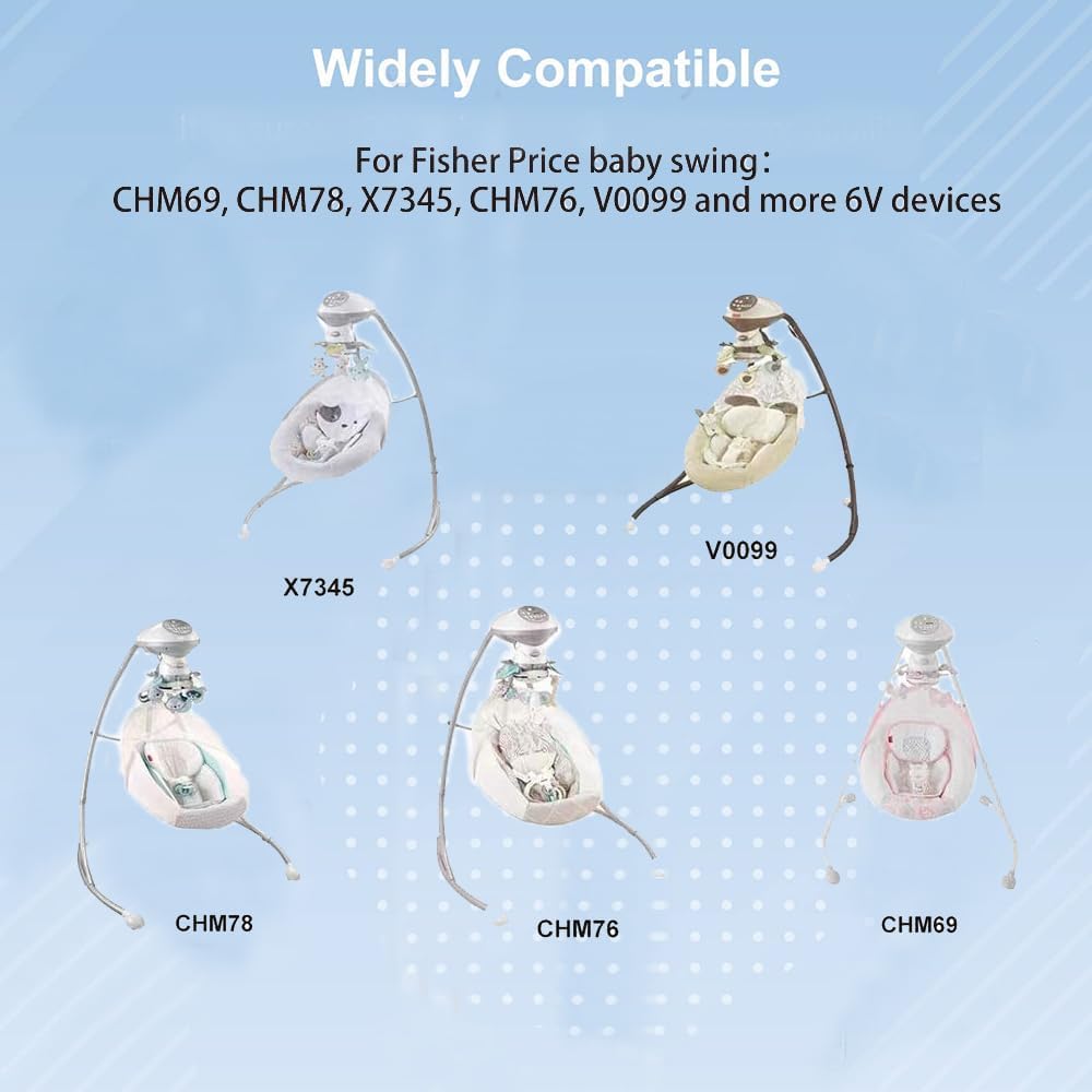 محول تيار متردد 6 فولت بيبي سوينغ متوافق مع فيشر برايس انجينويتي كرادل سوينغ، بوتيك، سمارت سايز 2 في 1، مهد الغابات المطيرة، كيبل شاحن سوينغ باترفلاي اوشن وندرز 6.6 قدم، ابيض