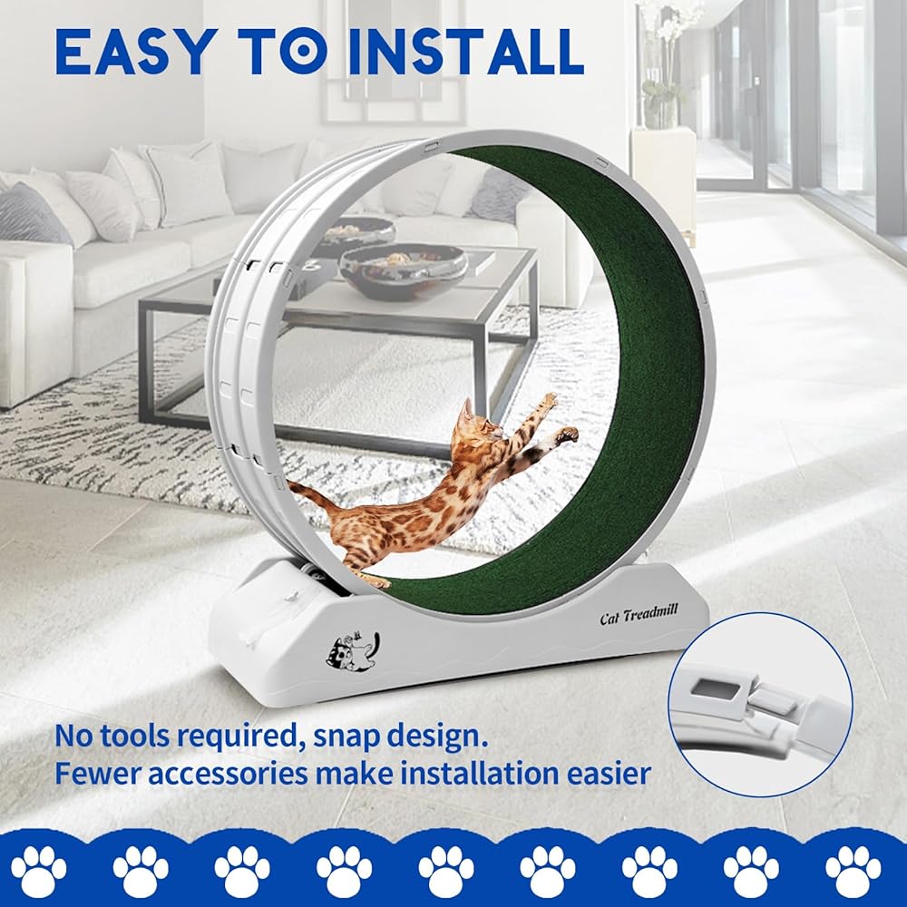 【مادة عالية الجودة وقوية ومتينة】عجلة الجري للقطط هذه مصنوعة من الخشب الصلب، متينة للغاية. تتميز عجلة الجري للقطط بسعة وزن قصوى تصل إلى 110 باوند، لذلك لا داعي للقلق بشأن وزن قطتك على الإطلاق. تم توسيع قاعدة عجلة المشي هذه لتلتف بالكامل حول عجلة الجري، كما أن مركز الجاذبية ذو القاعدة الموزونة صلب للغاية بحيث من غير المرجح أن ينقلب حتى أكثر القطط نشاطًا ورياضية.