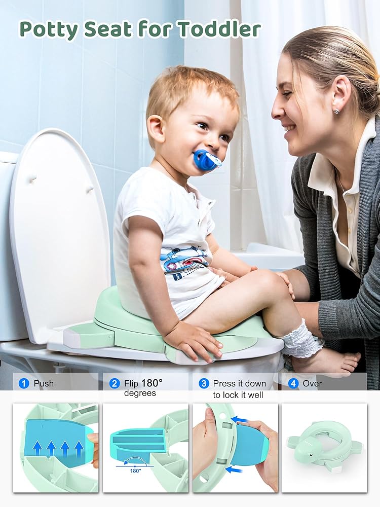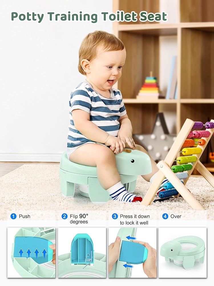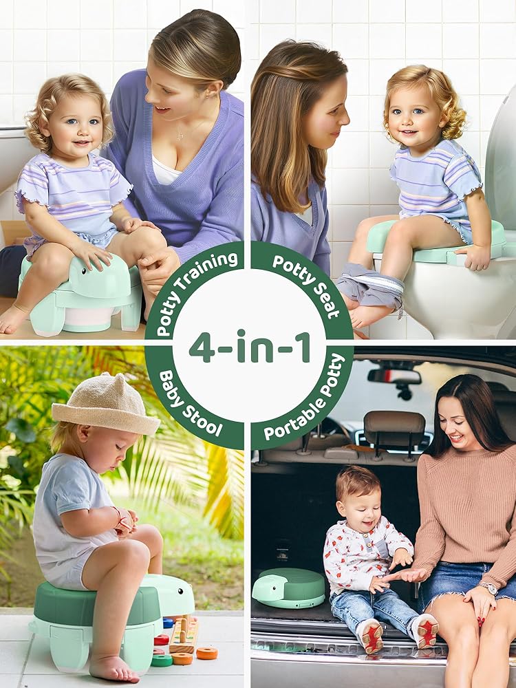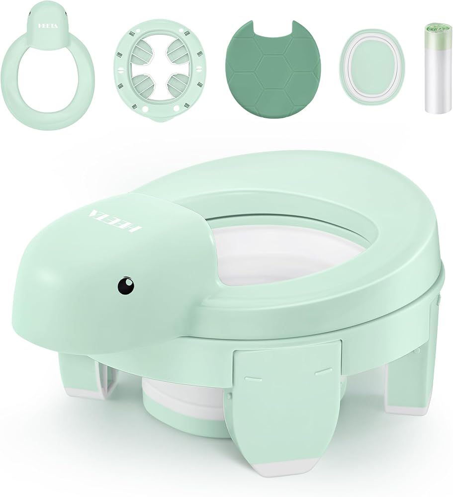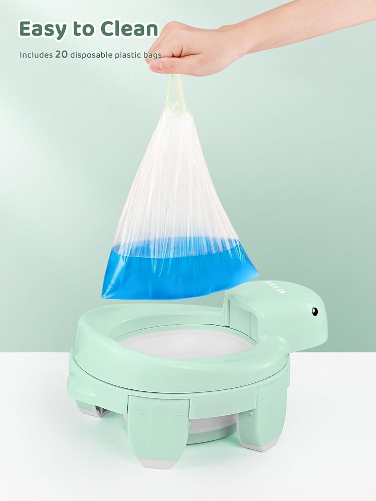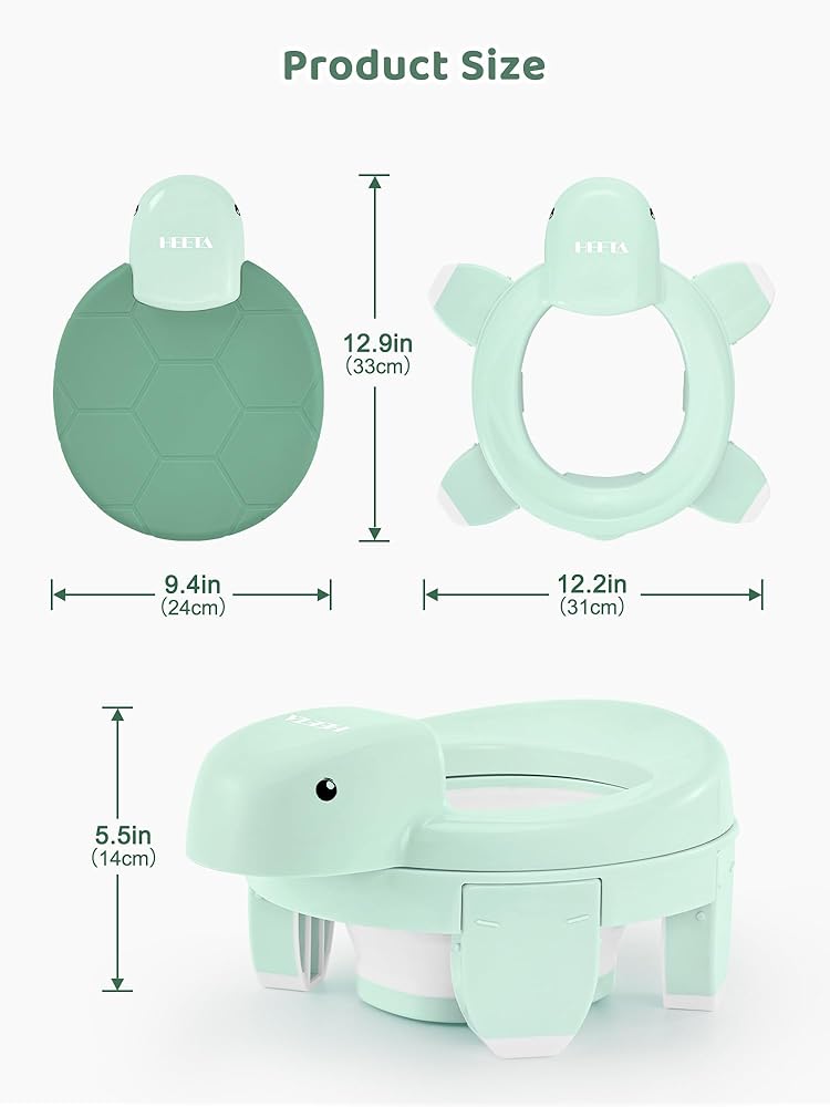 مرحاض تدريب على استخدام المرحاض 4 في 1 من هيتا للأولاد والبنات، نونية أطفال محمولة قابلة للطي مع 20 كيس تخزين، مقعد مرحاض للتدريب على استخدام المرحاض مع غطاء، مقاعد نونية للأطفال الصغار مع واقي من الرذاذ، أخضر