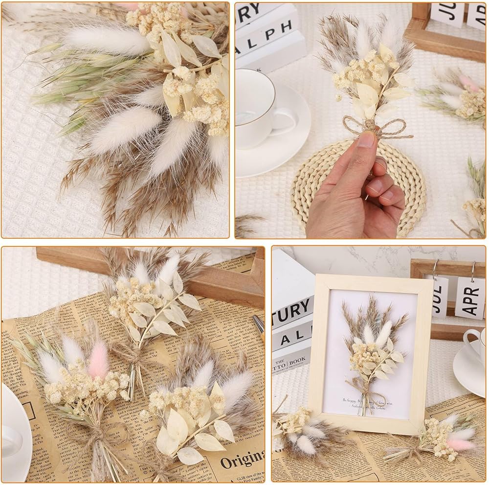 Versatile Decoration - With a variety of flowers including baby's breath, bunny tail grass, reed grass, and wheat, our 6pcs bouquet is perfect for DIY crafts, floral arrangements, table decorations, weddings, greeting cards, and even candle embellishments