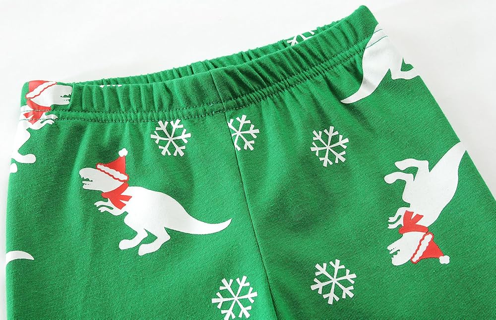 بيجامات عيد الميلاد بأكمام طويلة للأولاد الصغار منقوشة Pjs للأطفال على شكل ديناصور مجموعات ملابس عيد الميلاد للأطفال الصغار من سن 2 إلى 7 سنوات