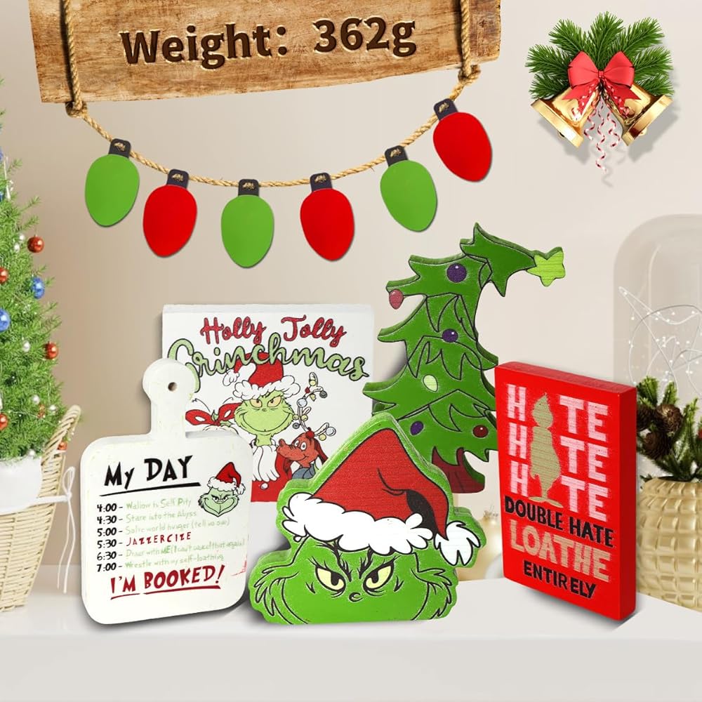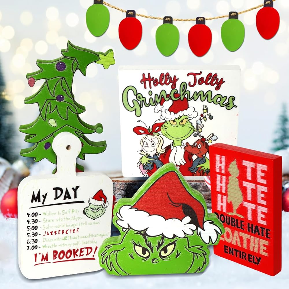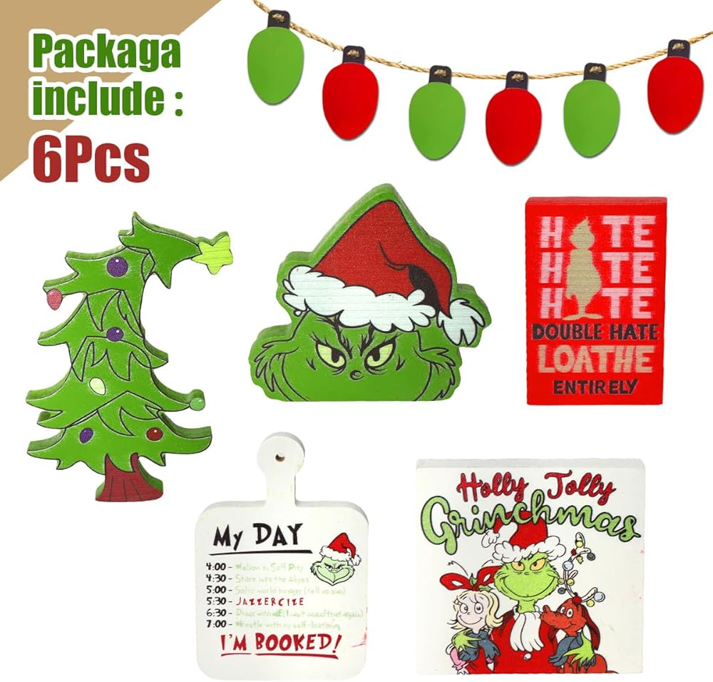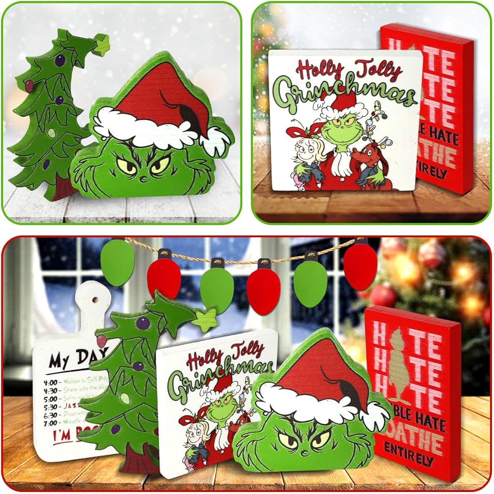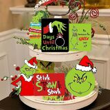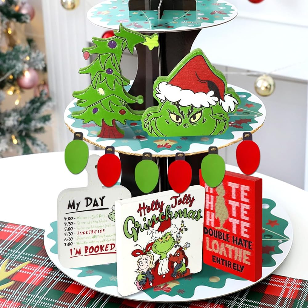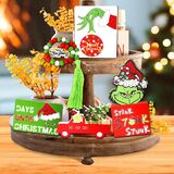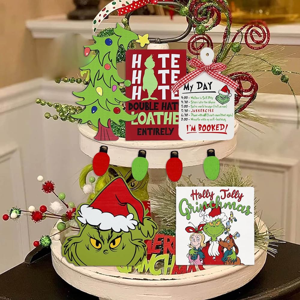 ديكور صينية متدرج من Grinchs، ديكور صينية متدرج لعيد الميلاد، ديكور صينية متدرج للمزرعة، زخارف خشبية لشجرة عيد الميلاد الخضراء (C)