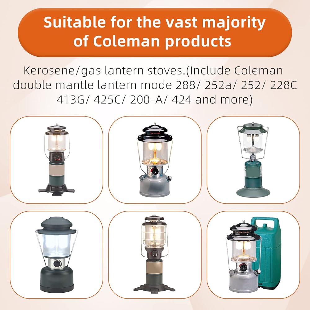 【متوافق مع】مناسب لجميع فوانيس أو موقد كولمان. (يتضمن وضع فانوس كولمان المزدوج 288/252a/252/228C/413G/425C/200-A/424 والمزيد)