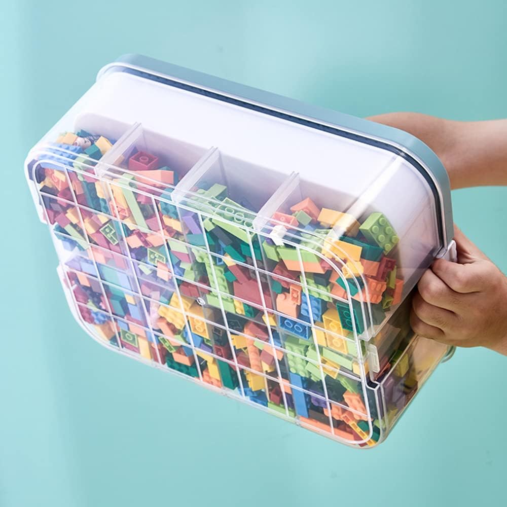 Perfect For Various Items: toy organizer with 2 tiers and individual adjustable compartments, store bricks individually in this handy storage tray and give each color brick its own compartment. Also works great for bobbins, colored beads, jewelry, scrapbooking supplies