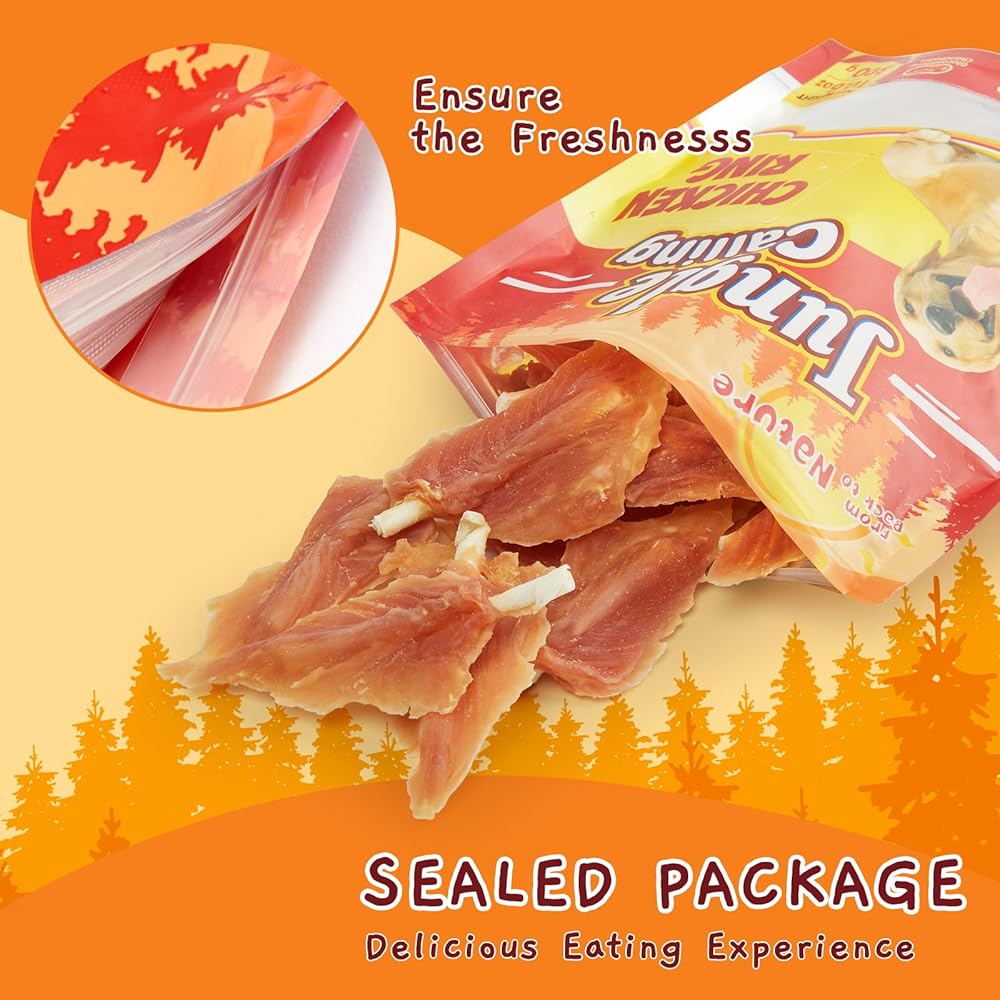 [علاج غني بالبروتين للكلاب] تمتلئ علاجات الكلاب Jungle Calling بالدجاج الذي يحتوي على نسبة عالية من البروتين نسبيًا مما يوفر سهولة الهضم والامتصاص للمساعدة في الحفاظ على صحة أمعاء كلبك.