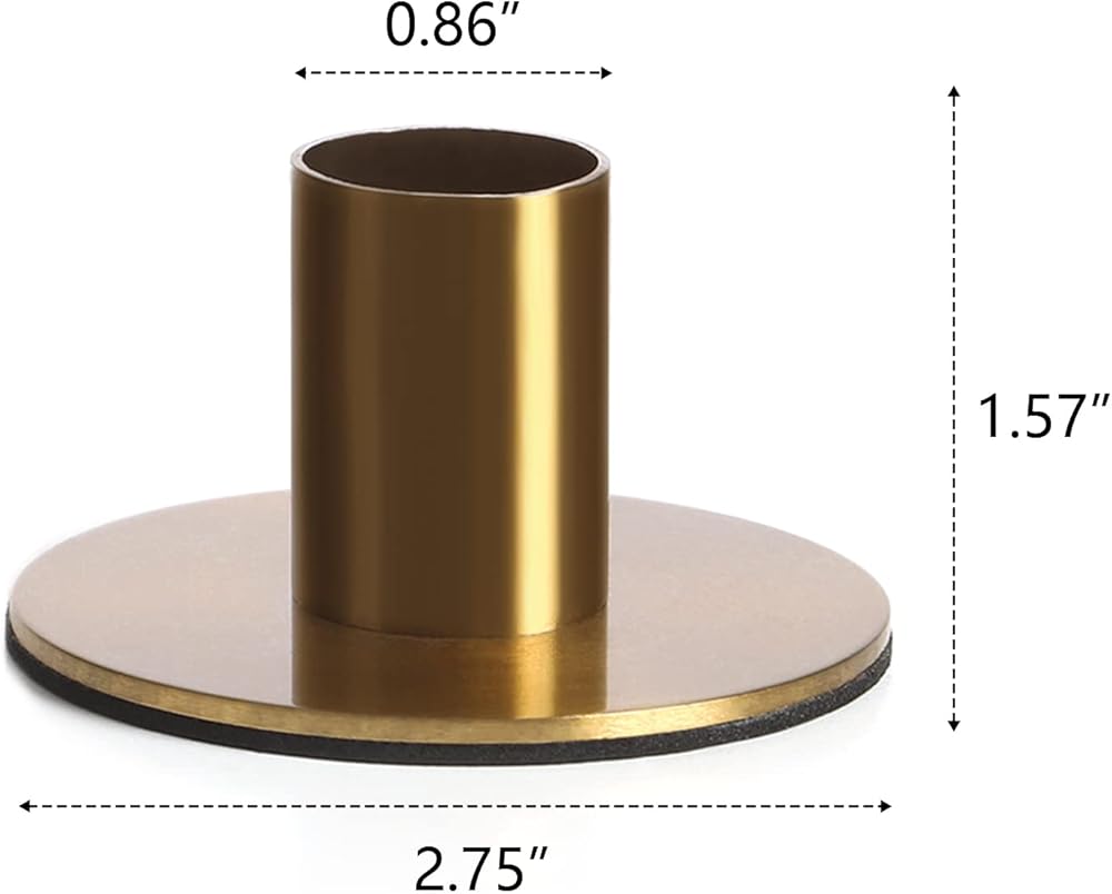 • Candle holder base diameter: 2 3/4 inch; Candle holder height: 1.57”; These holders work with most standard taper candles (diameter 7/8 inch; 2.2 cm) ;package include: set of 6 brass color candle holders