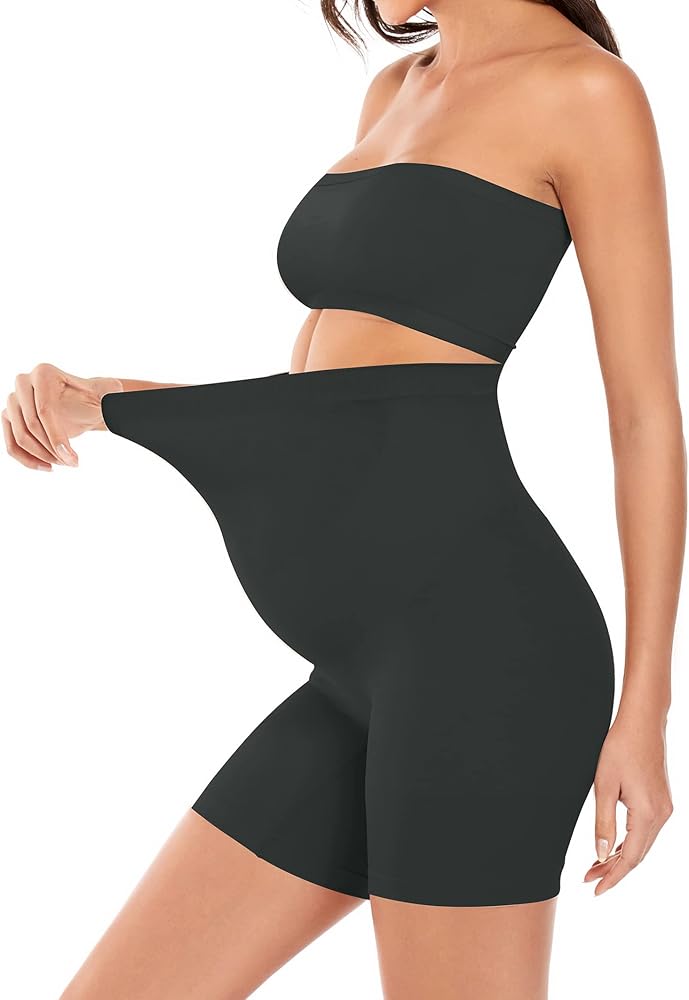 Comfortable Material : Nylon and Spandex, seamless design with stretch and breathable fabric,completely opaque and can not be seen through, super elastic soft fabric easy to put on and hold your belly with enough room to grow,it provides a flattering silhouette while supporting your baby. We use the fabric 100% breathable, hardwearing, non-pilling, resists fading.