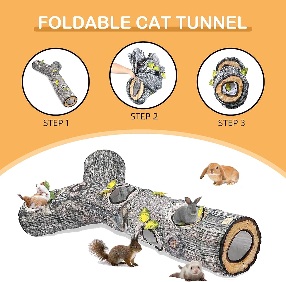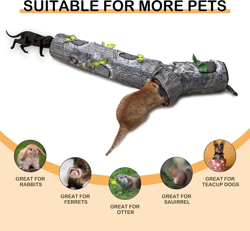 اختيار رائع للقطط: هذه لعبة تجعل القطط مجنونة. يحتوي المنتج على 5 فتحات، وهو مناسب للعديد من القطط للعب والمطاردة معًا. يأتي هذا النفق الطويل الجميل بطول 59 انش وطول 9.8 انش مما يوفر مساحة واسعة للقطط البالغة والجراء والقطط الصغيرة والقوارض والخنازير الغينية والشنشيلة للركض من الطرف إلى النهاية.
