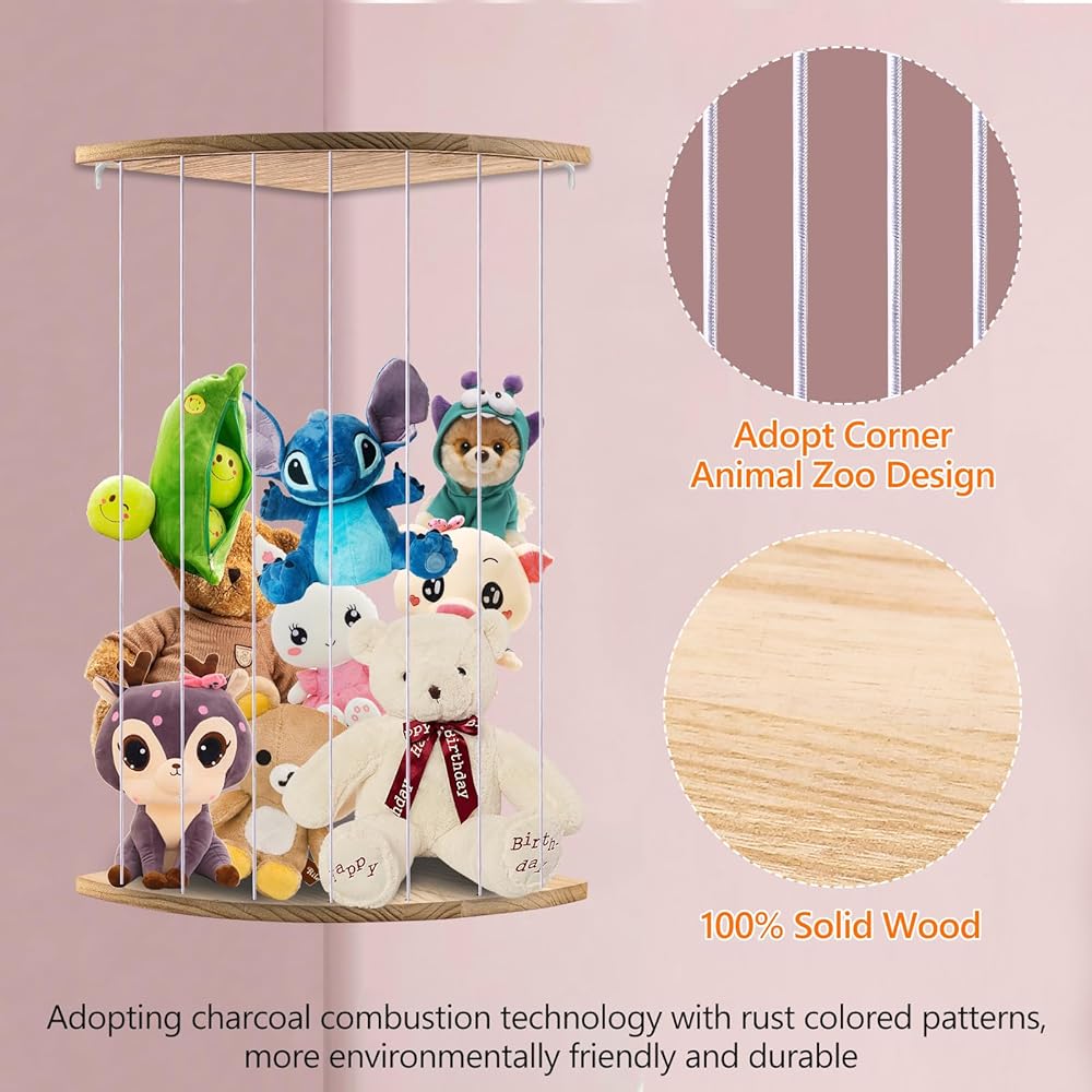 aipudi تخزين الحيوانات المحشوة، تخزين ألعاب الزاوية، تخزين الألعاب الخشبية لغرفة نوم الأطفال، غرفة لعب الأطفال الصغار، تخزين الألعاب الناعمة، تخزين الألعاب القطيفة، منظم القطيفة الخشبية