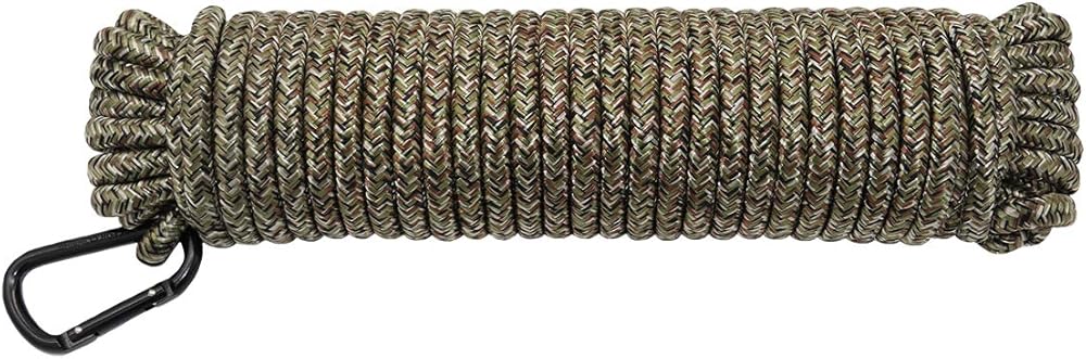 قبضة 80 × 3/8 بوصة حبل مموه بولي مع حلقة تسلق - حبل مضفر من مادة البولي بروبيلين - حد حمل العمل 244 - التخييم، القوارب، صيد الأسماك، في الهواء الطلق