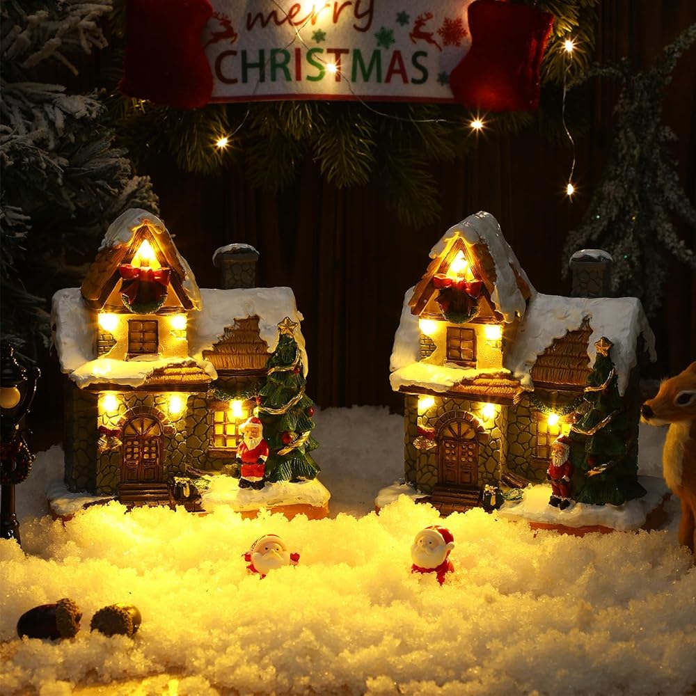 With dimensions of about 5.5 x 3.14 x 6.3 inches, these LED resin miniature village houses are attractive but not taking up much space. Crafted with exquisite details and charming features, they effortlessly create a festive atmosphere.