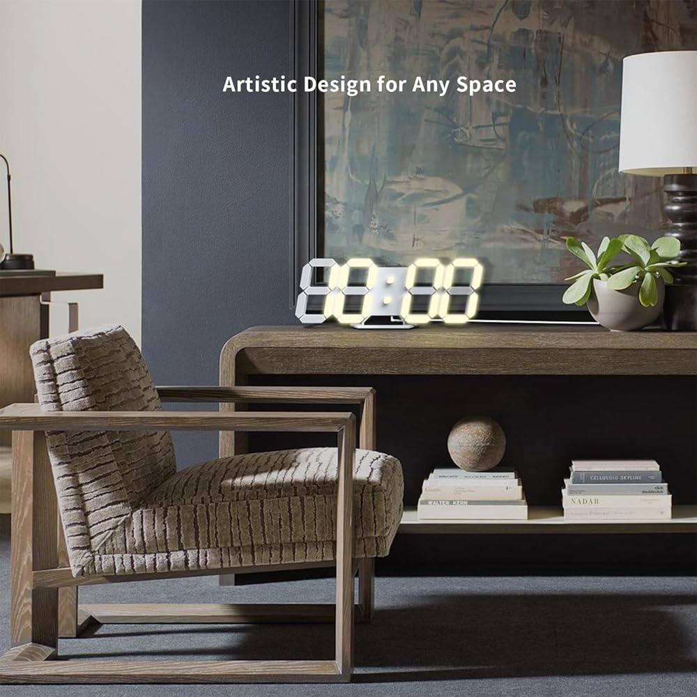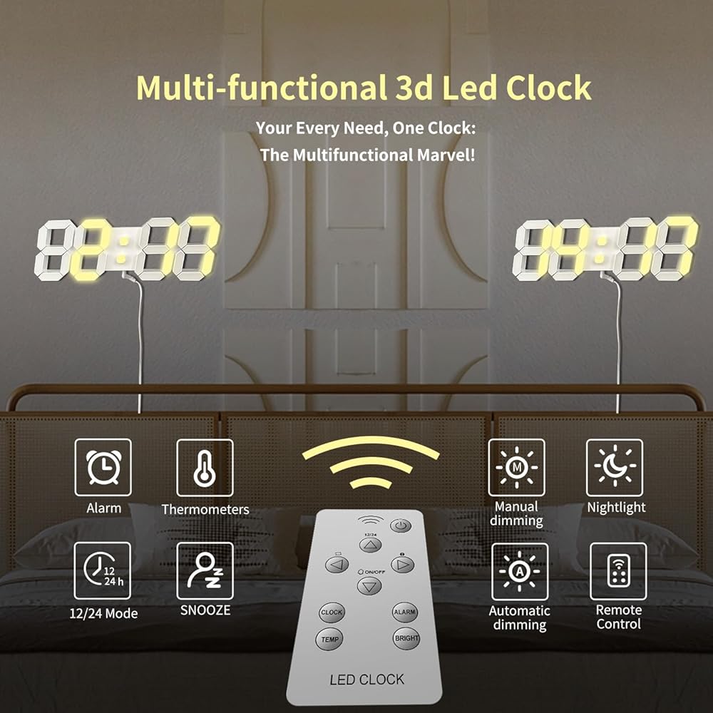[شاشة LED ثلاثية الأبعاد كبيرة مقاس 10 بوصات]: تتميز الساعة بشاشة LED ثلاثية الأبعاد كبيرة مقاس 10 بوصات، مما يجعل من السهل قراءتها من مسافة بعيدة. إنها مناسبة لمواقع مختلفة، بما في ذلك غرف النوم وغرف المعيشة والمكاتب والفصول الدراسية.