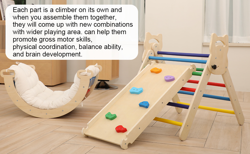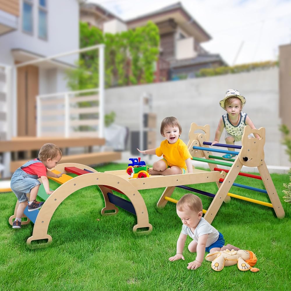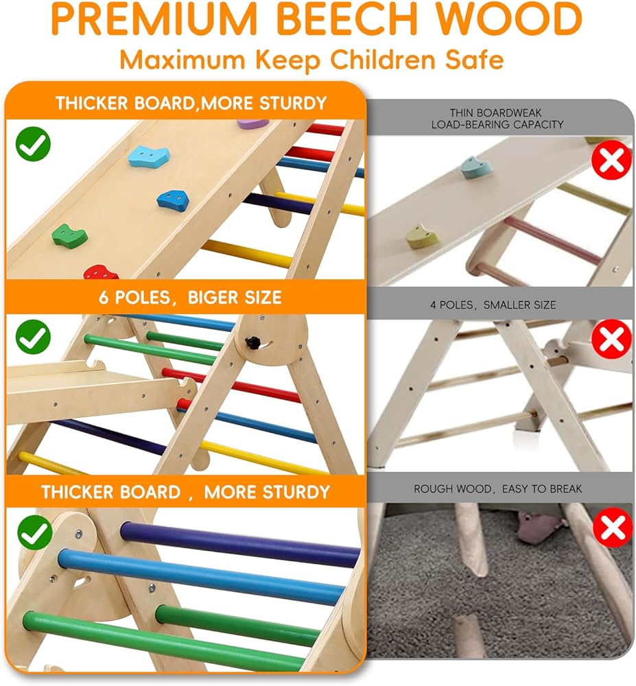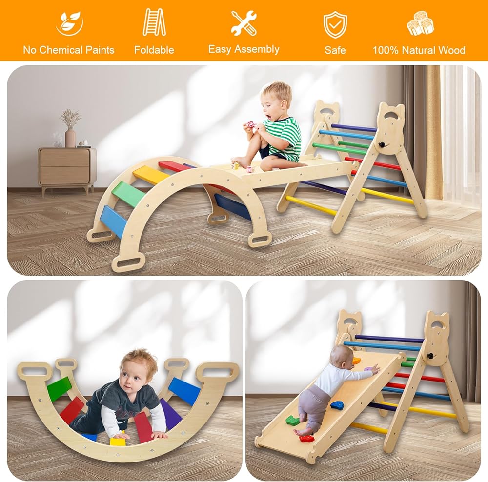 مجموعة مثلثات بيكلر 3 في 1 من Ymonlia، مثلث تسلق مونتيسوري مع منحدر وقوس مع منزلق، مجموعة ألعاب تعليمية لصالة الألعاب الرياضية للأطفال في الأماكن المغلقة والمفتوحة، صالة ألعاب رياضية للتسلق مونتيسوري للأطفال 1-6 (ليست وسادة إسفنجية)