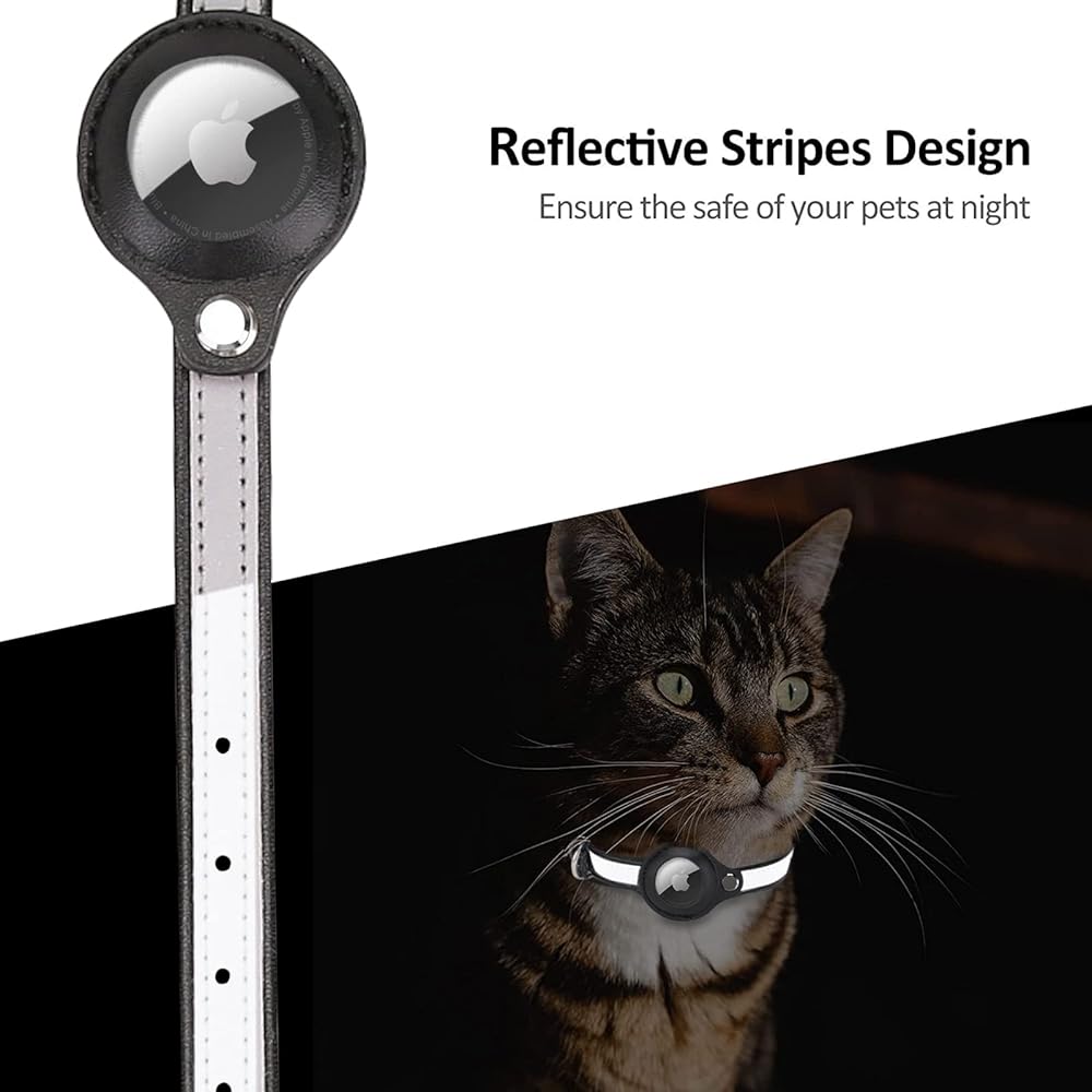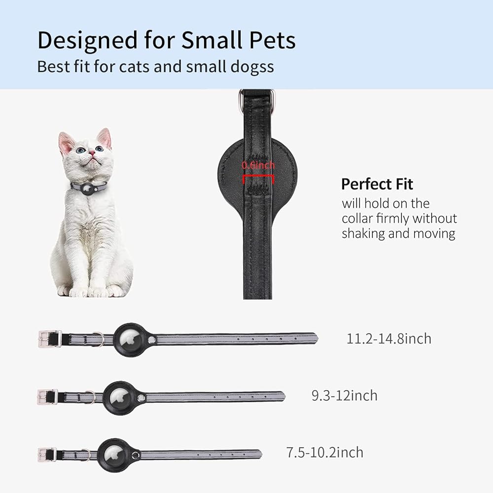 【Safe Collar & Soft Leather】This Cat AirTag collar made of Soft Leather, won't rub off fur or scratch your cat's skin. It protects your AirTag device from falling off or dangling. In addition, the AirTag collar has has reflective strap that makes it easy to find your cat in dark and easy for cars to move safely away from traffic outdoors.