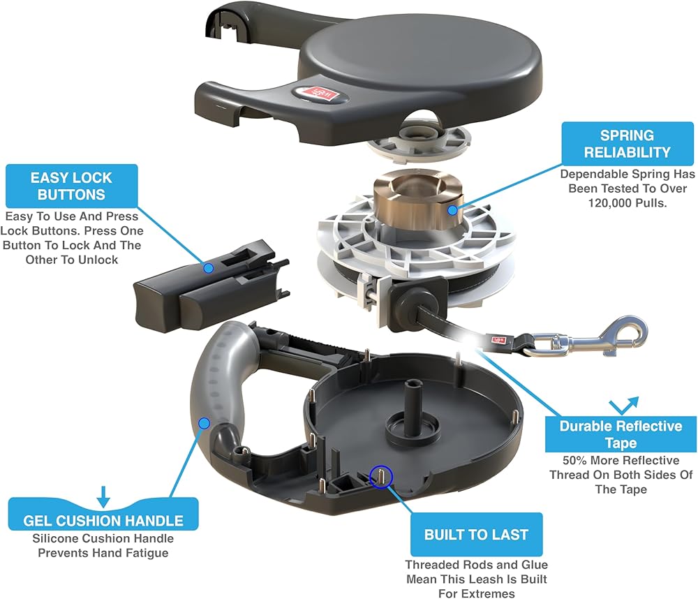 زمام كلاب فاخر قابل للسحب مع تقنية سحب فائقة النعومة وآلية مقاومة للصدأ بالداخل لسنوات عديدة من الاستخدام