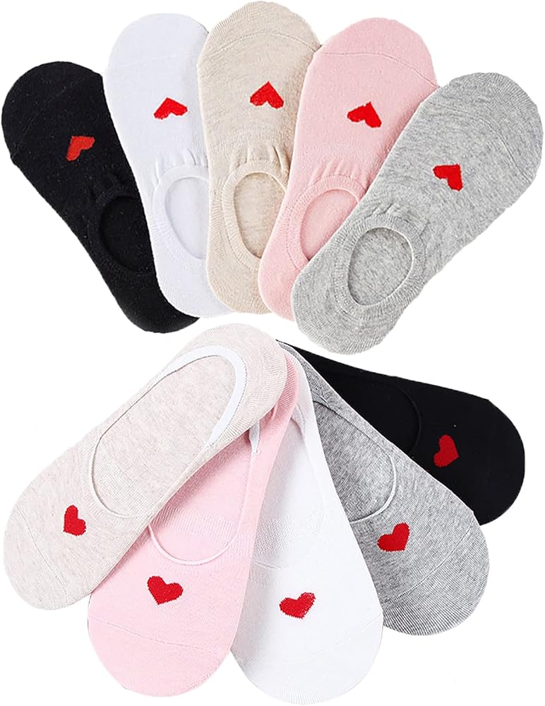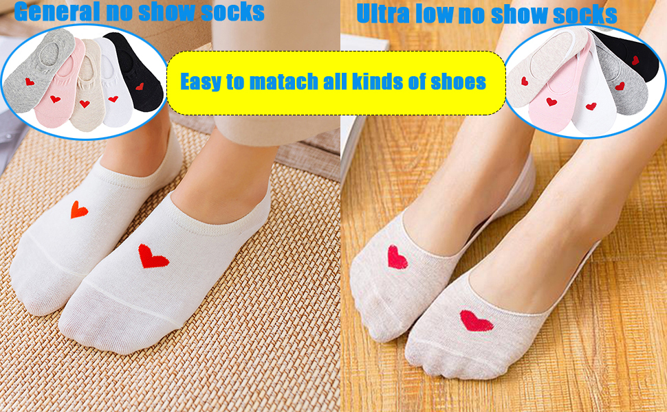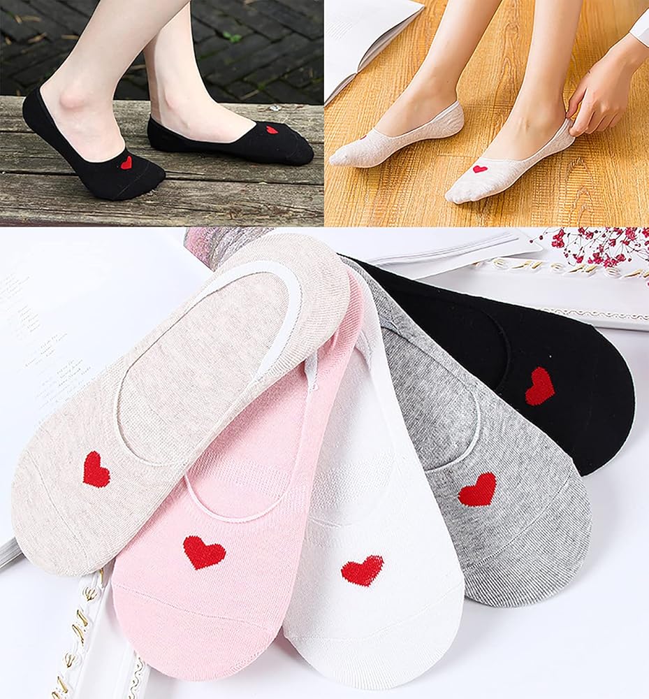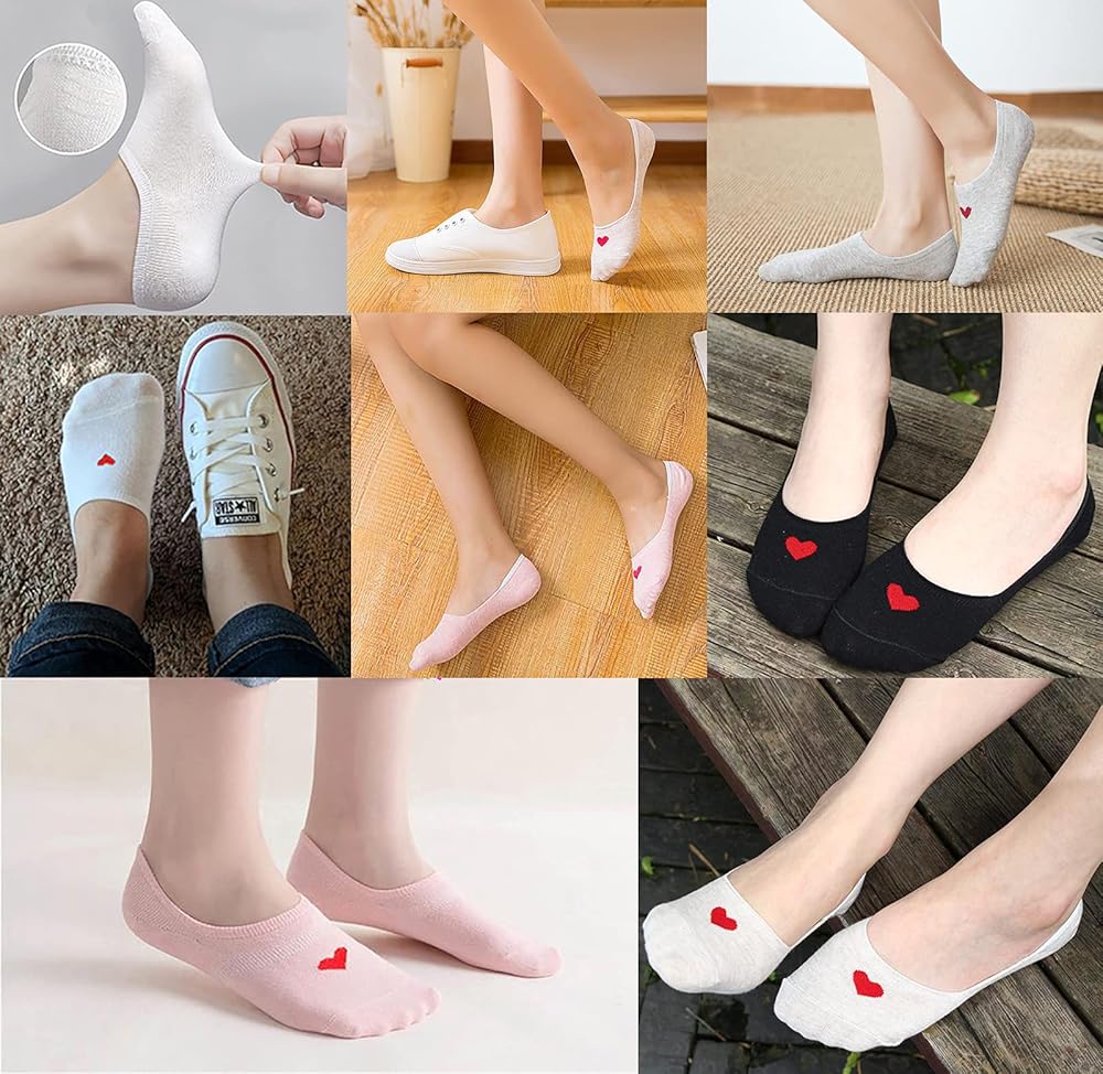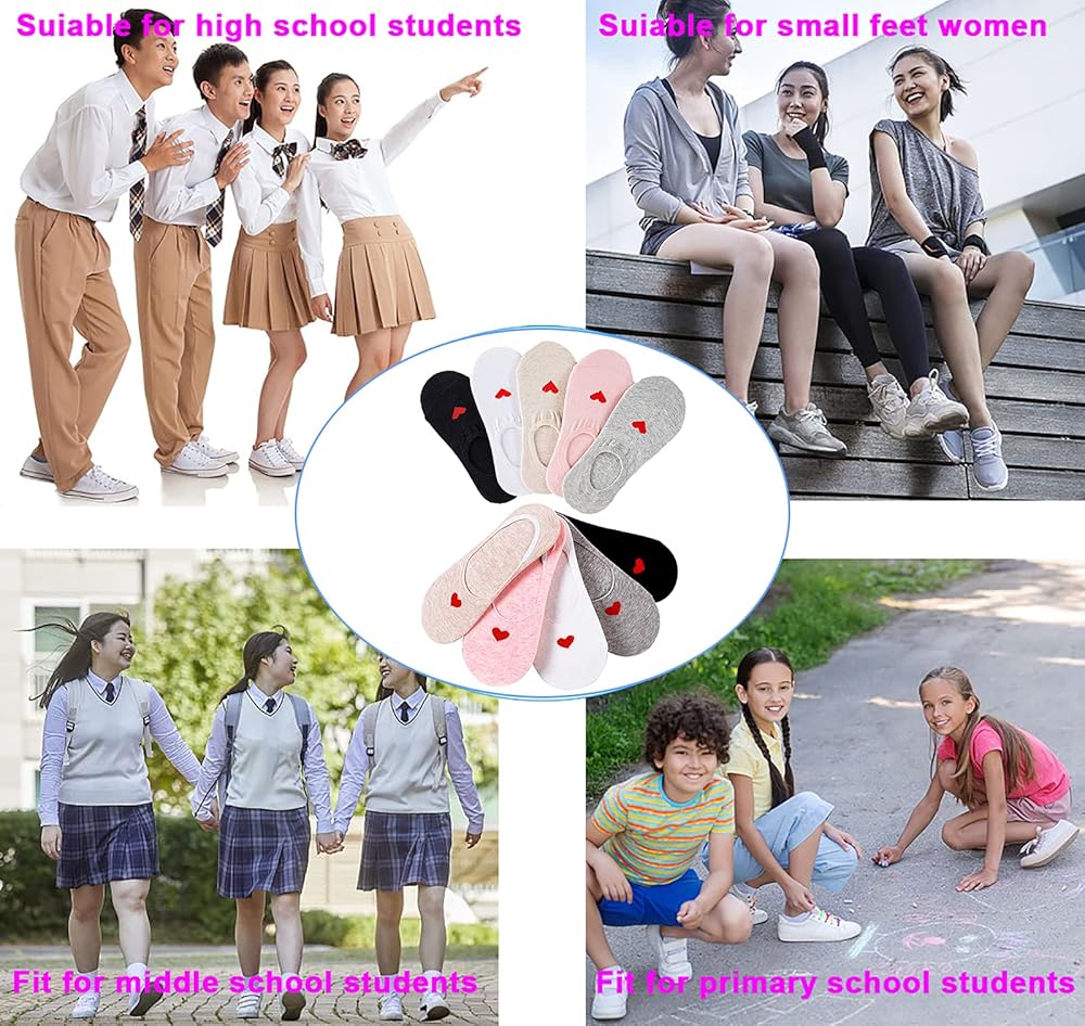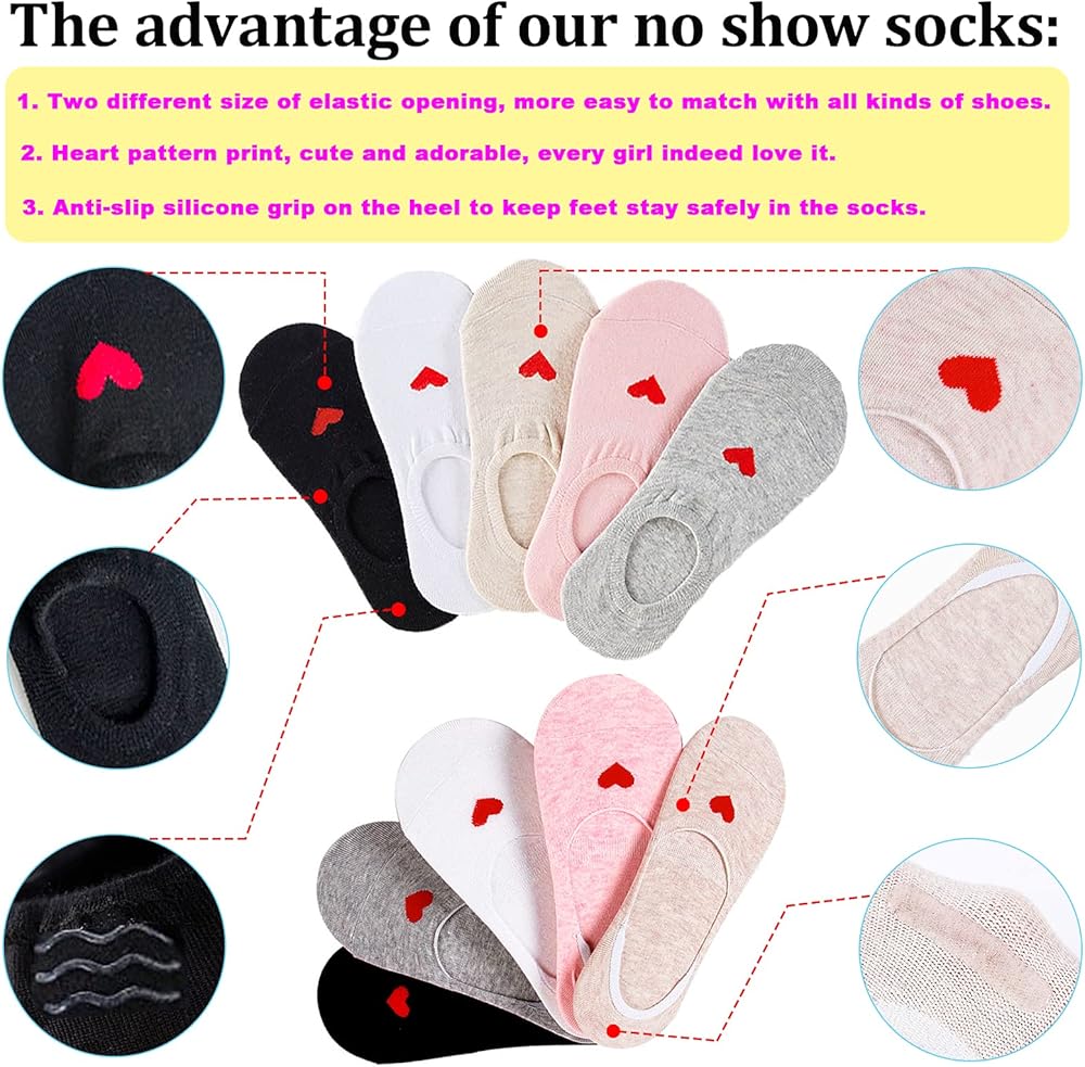 • 【تصميم عملي ورائع】مع طباعة على شكل قلب، تجعل كل فتاة تشعر بالحب الدافئ في الحياة. مع قبضة سيليكون غير قابلة للانزلاق على الكعب تساعد على منع الجوارب من الانزلاق أثناء المشي أو الجري. تصميم الفتحة المرنة ليس فضفاضًا جدًا أو ضيقًا جدًا، مما يحافظ على راحة قدميك طوال الوقت.