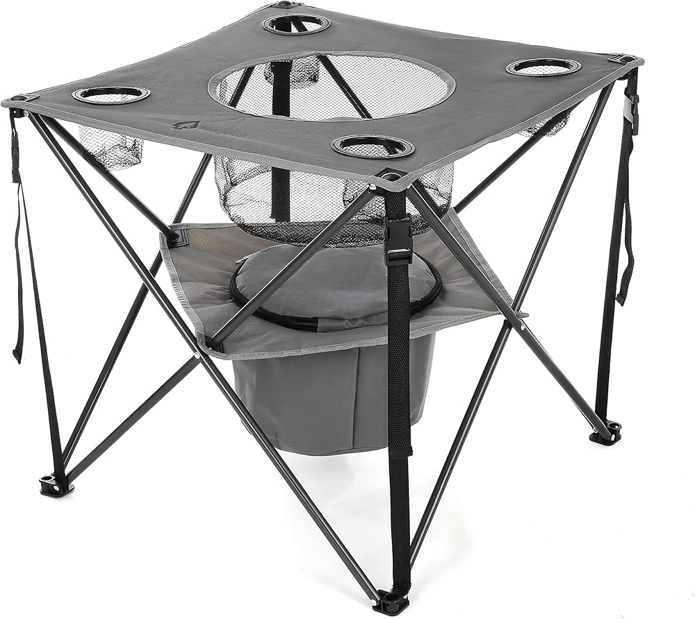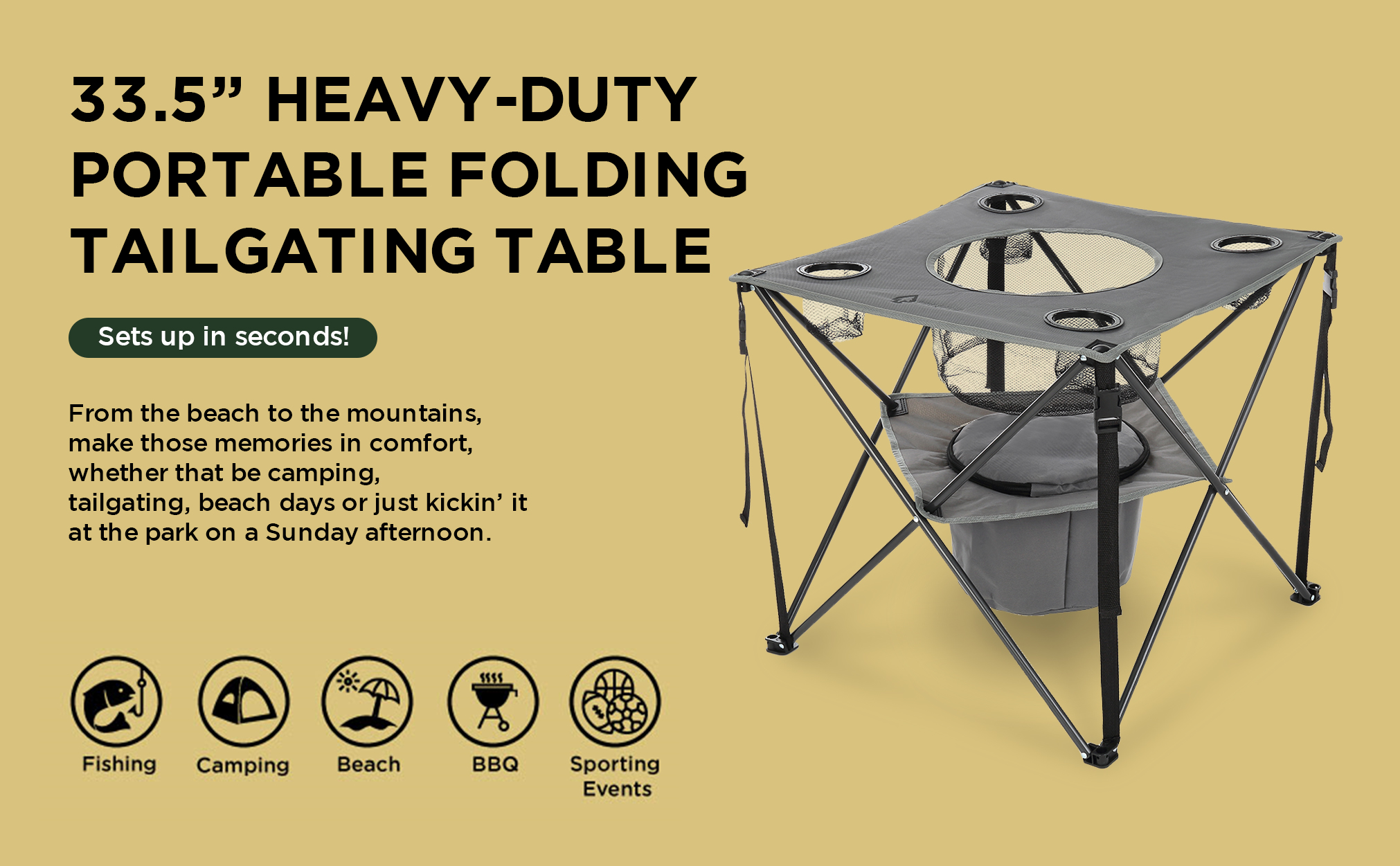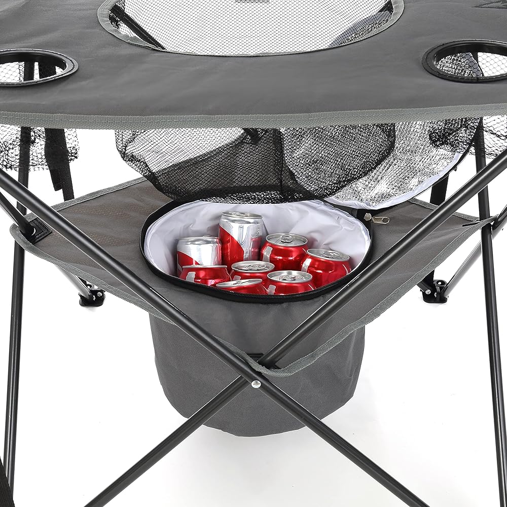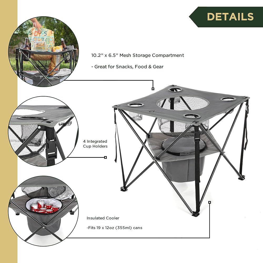 طاولة باب خلفي محمولة قابلة للطي مقاس 33.5 بوصة من ARROWHEAD، 4 حاملات أكواب، سلة طعام، مبرد معزول، بدون سطح مترهل، حقيبة حمل، إطار فولاذي، قماش 600D عالي الجودة، دعم في الولايات المتحدة الأمريكية