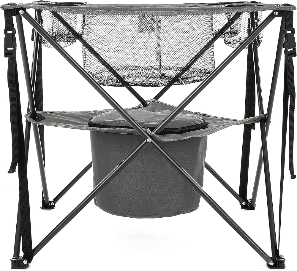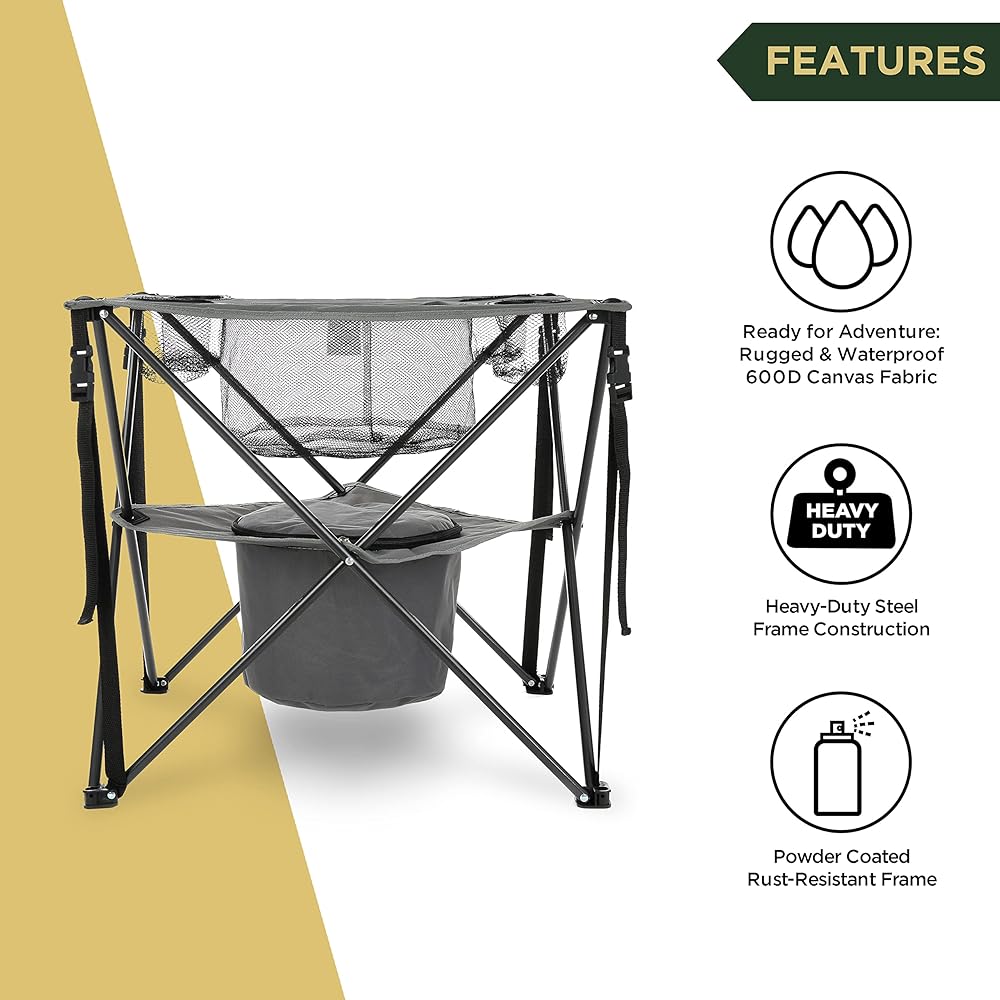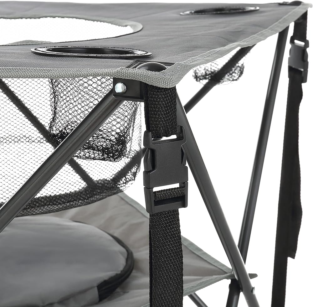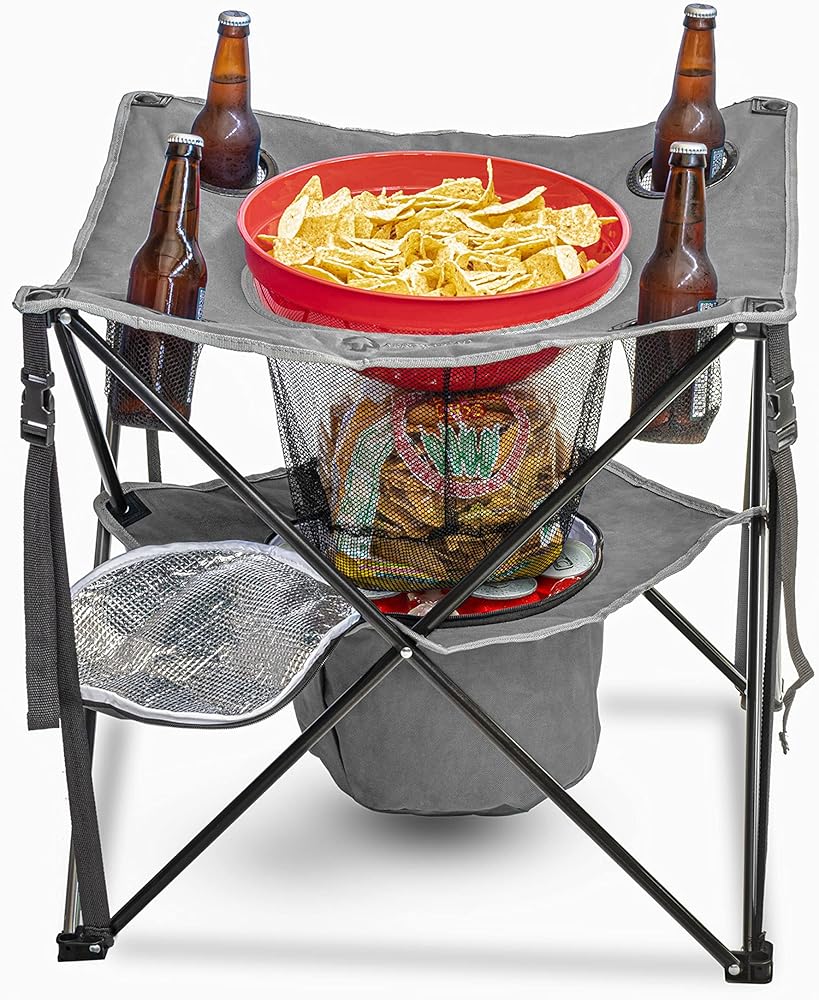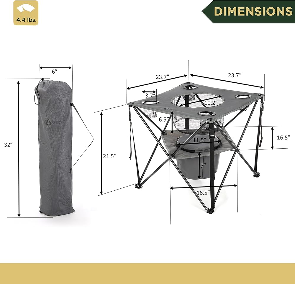 طاولة باب خلفي محمولة قابلة للطي مقاس 33.5 بوصة من ARROWHEAD، 4 حاملات أكواب، سلة طعام، مبرد معزول، بدون سطح مترهل، حقيبة حمل، إطار فولاذي، قماش 600D عالي الجودة، دعم في الولايات المتحدة الأمريكية
